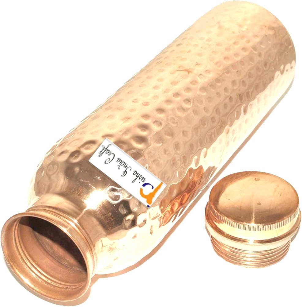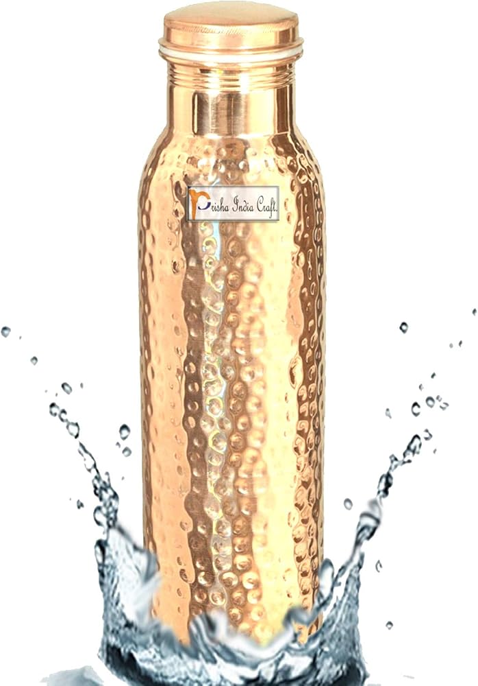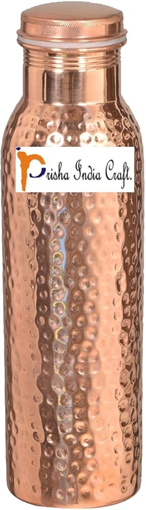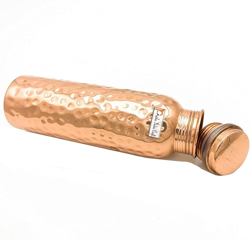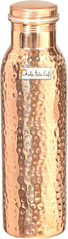 • Features: Prisha India Craft copper bottle, hammered style design, bottle size: height: 9.00 inch, diameter/width: 2.00 inch, capacity: 600 ml, weight: 180 gram, on purchase you will get: 1 copper bottle
