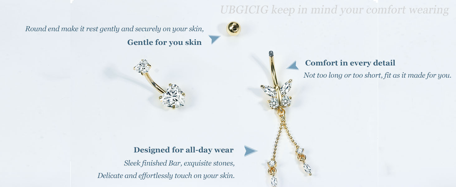 مادة مجوهرات ثقب البطن: قضبان البطن مصنوعة من الفولاذ المقاوم للصدأ، بدون الرصاص والنيكل، مناسبة لزر البطن الحساس؛ AAAAA+ مكعب زركونيا لامع مرصوف، لامع، يمنحك مظهرًا ساحرًا؛ تميزي مع حلقة البطن المتدلية الرائعة هذه التي تضيف لمسة من الأنوثة إلى مظهرك