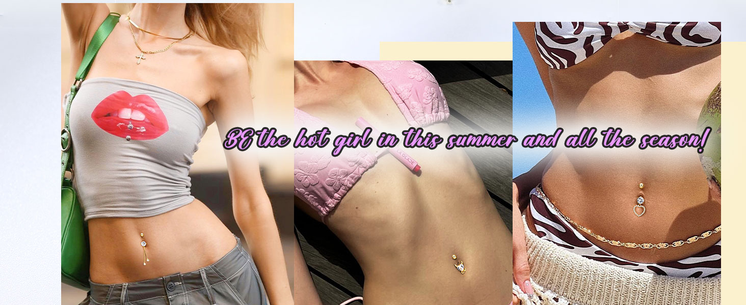 حجم مجوهرات ثقب البطن المتدلية: 14 حلقة زر البطن (1.6 مم)، طول الحديد 10 مم؛ خفيفة الوزن ومريحة في الارتداء، يمكنك ارتداؤها بثقة طوال اليوم دون أي إزعاج أو مخاوف