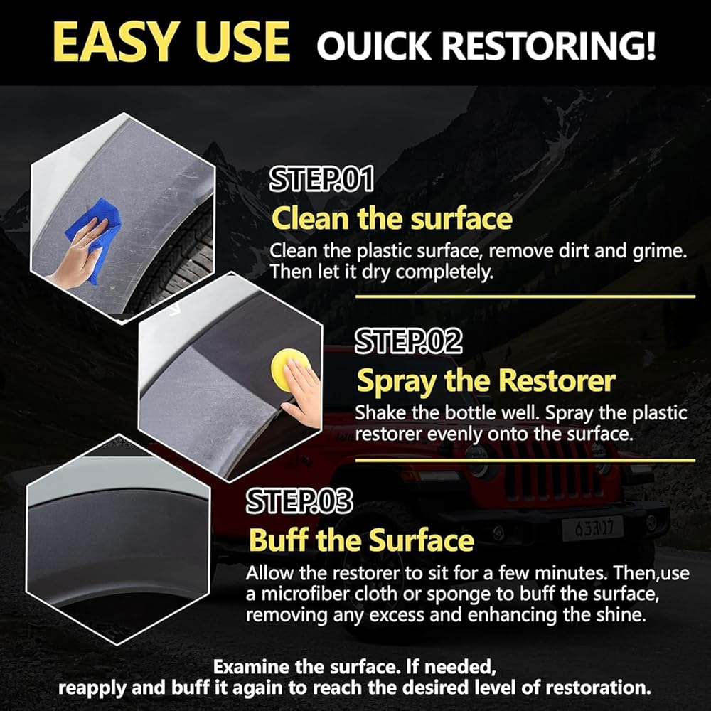 مُرمم نهائي لبلاستيك وتزيين السيارة - العودة إلى اللون الأسود يعيد الحواف الباهتة، وحماية من الأشعة فوق البنفسجية، وطلاء سيراميك طويل الأمد، وتركيبة غير دهنية للداخل والخارج