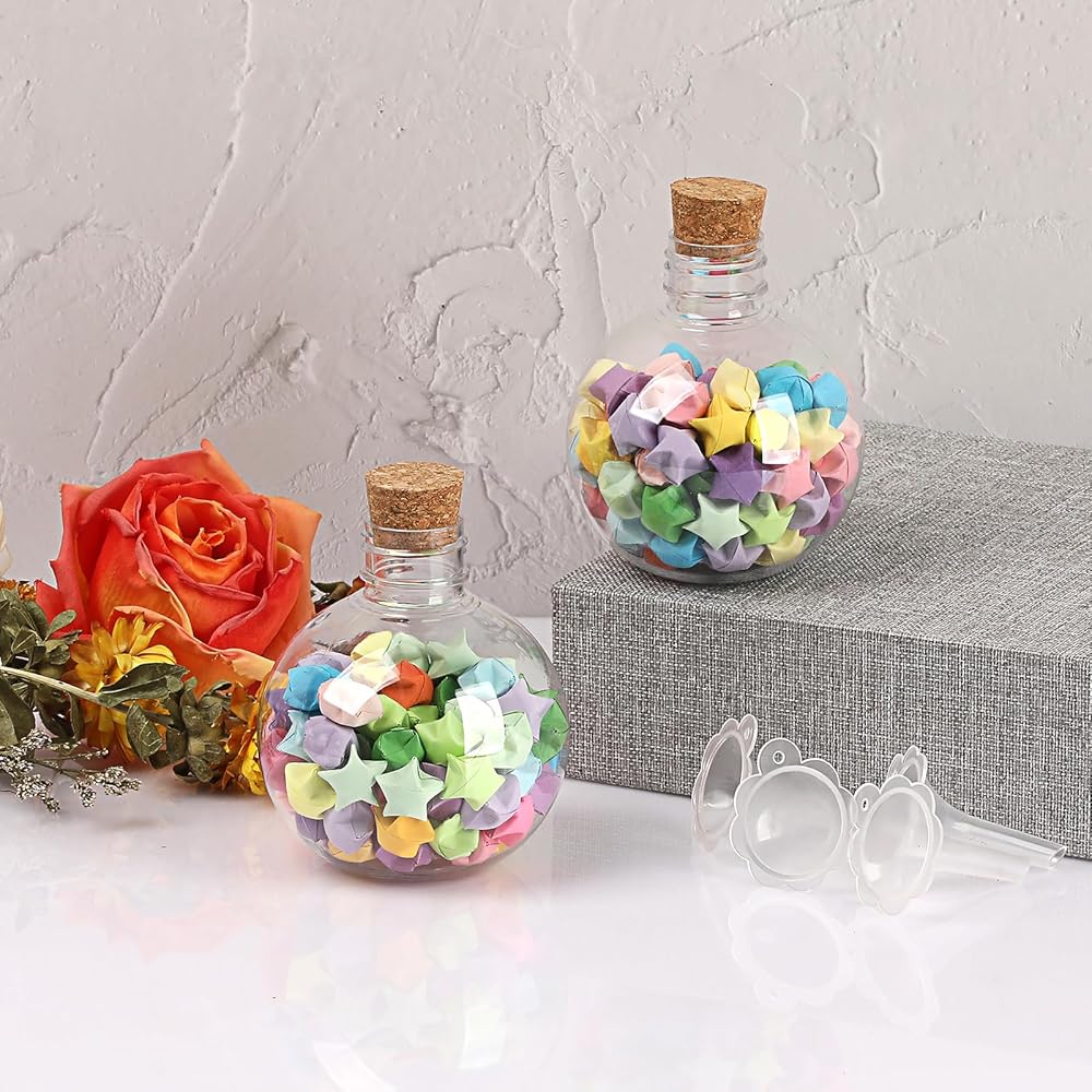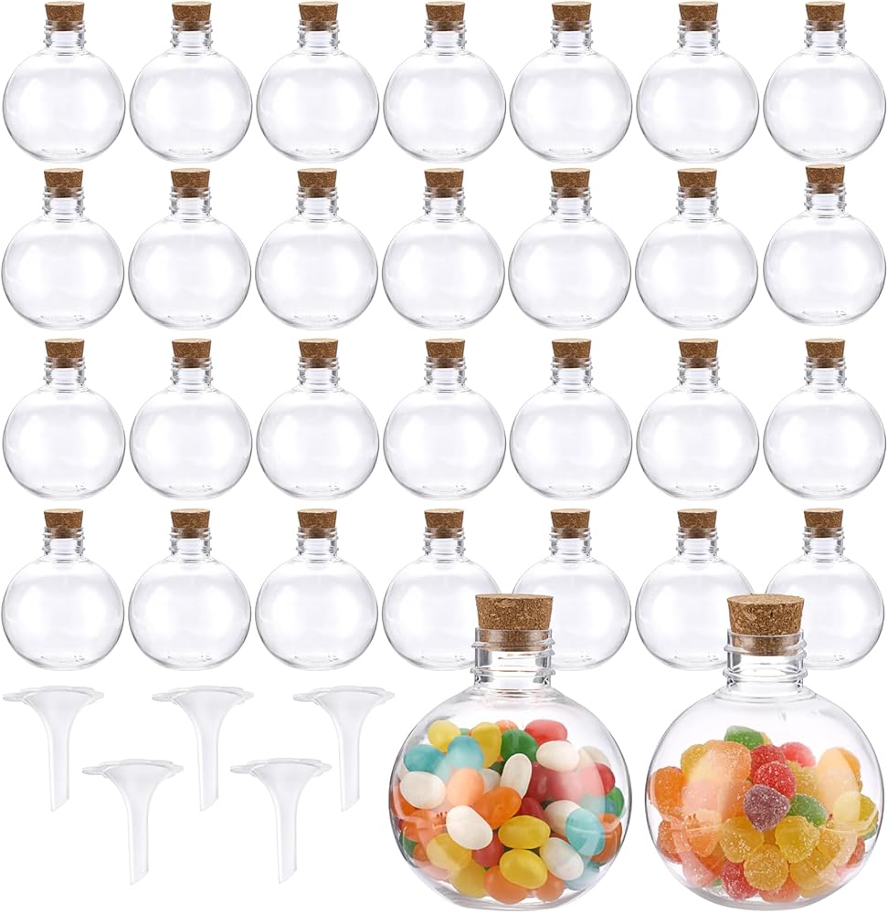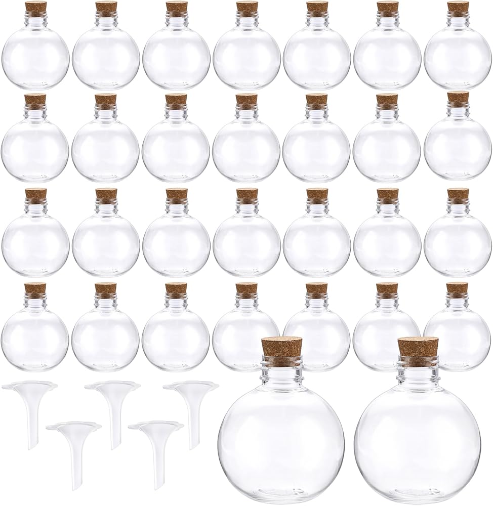 الزجاجة اللطيفة: يبلغ مقاس كل زجاجة مستديرة 2.7 بوصة عمق × 3.1 بوصة ارتفاع (6.9 × 8 سم)، بسعة حوالي 5 أونصة/150 مل. تحتوي العبوة على 30 قطعة من الزجاجة مع الفلين و5 قطع من القمع، والتي يمكن أن تلبي احتياجاتك المختلفة للاستخدام اليومي والتزيين، شاركها مع صديقك وعائلتك.