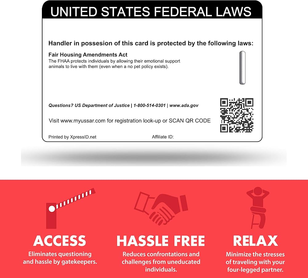2. One Emotional Support Dog ID as shown on the main Photo ( customizable)