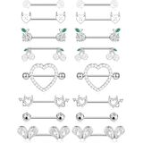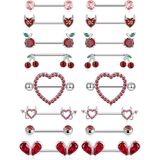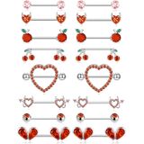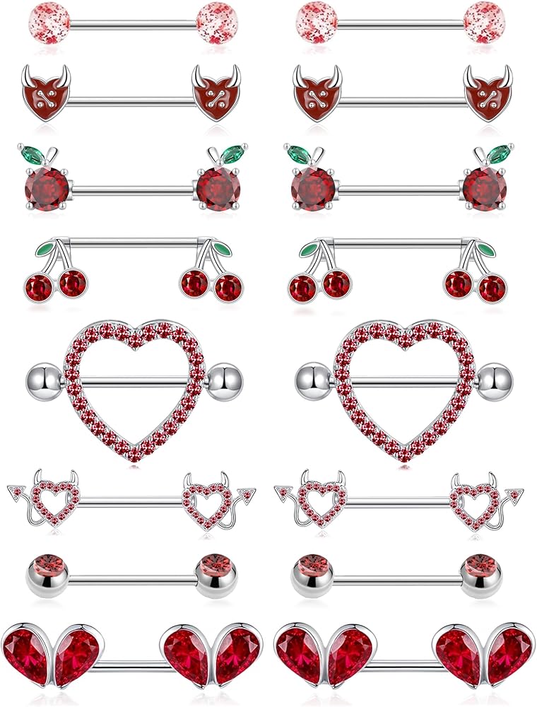 8 أزواج من حلقات الحلمة 14 جرام من الفولاذ المقاوم للصدأ على شكل قلب الكرز والتفاح الشيطان تشيكوسلوفاكيا من الأكريليك على شكل كرة من الحديد، مجموعة حلقات اللسان اللطيفة من المجوهرات المثقوبة للنساء بلون فضي أحمر in Kuwait