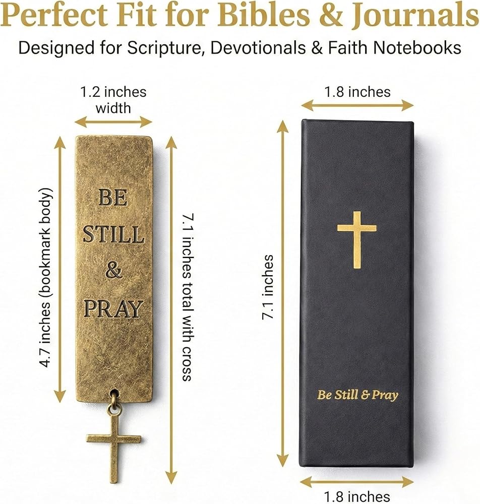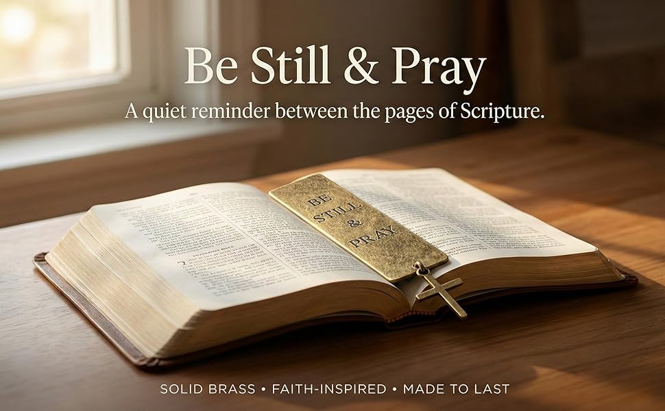 • 【علامة مرجعية للكتاب المقدس المسيحي للصلاة والتفاني】علامة مرجعية للكتاب المقدس المسيحي مصممة لإضفاء السكون على قراءة الكتاب المقدس. منقوشة عليها عبارة "Be Still & Pray"، تشجع علامة الصلاة النحاسية هذه على التفكير الهادئ أثناء دراسة الكتاب المقدس والعبادات وممارسة الإيمان اليومي.
