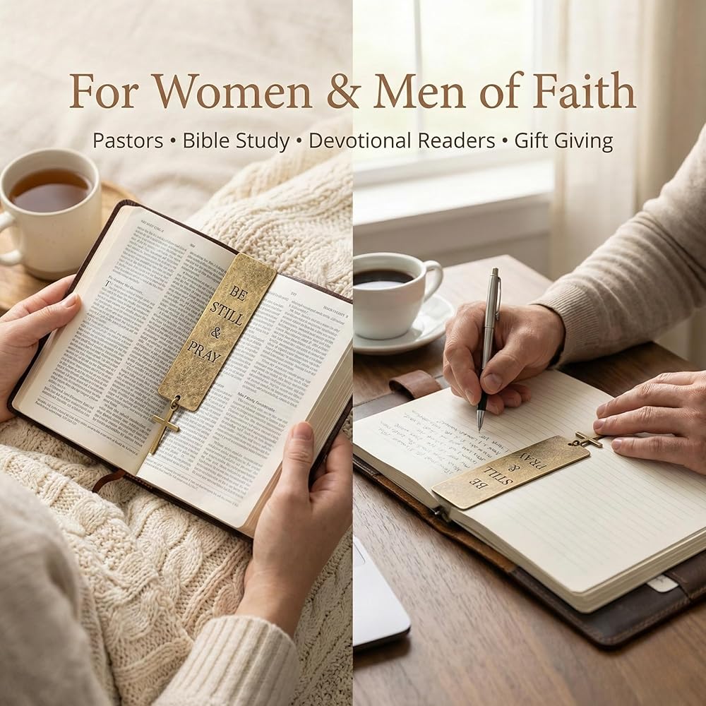 إشارة مرجعية للكتاب المقدس المسيحي - إشارة مرجعية للصلاة من معدن النحاس الصلب مع صليب - هدية الكتاب المقدس "كن ثابتًا وصلي" للنساء والرجال - دراسة الكتاب المقدس والقراءة التعبدية
