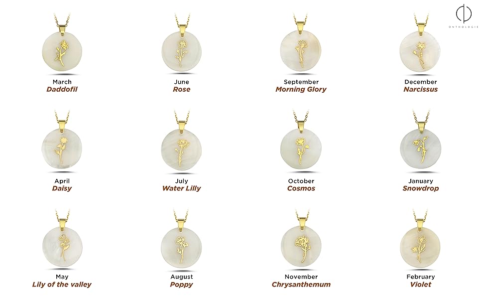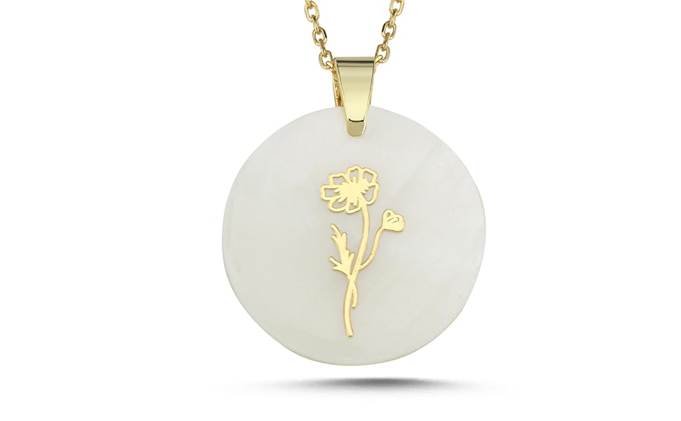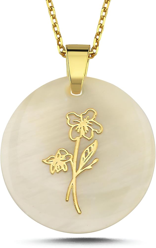 قلادة زهرة شهر الميلاد على أم اللؤلؤ الطبيعي، قلادة من الفضة الإسترليني عيار 925 قيراط قلادة زهرة الميلاد، مجوهرات شخصية لشهر الميلاد، هدية ذات مغزى للنساء in Kuwait