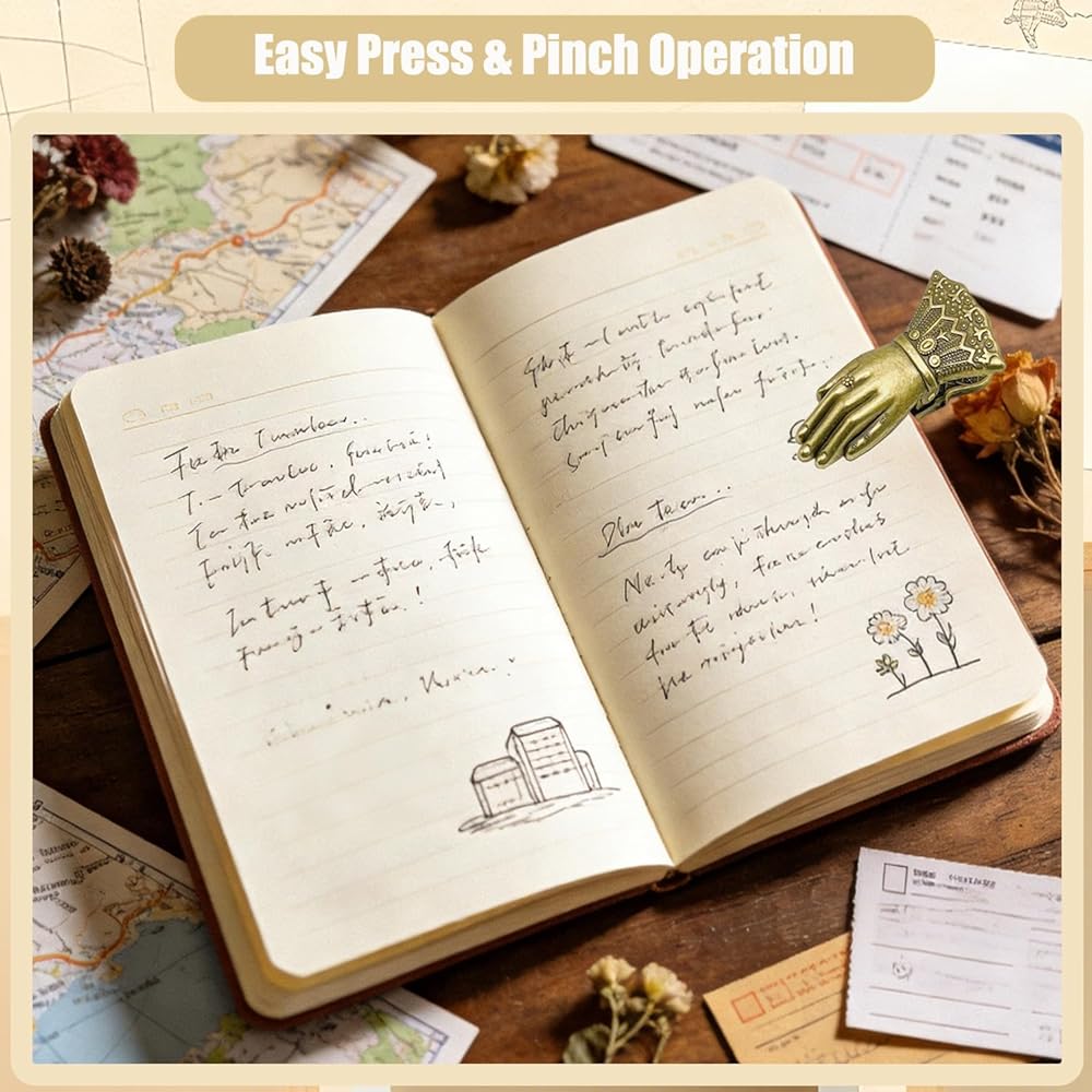 This vintage-style metal hand shaped journal clip brings an elegant touch to your creative projects and organizational needs.