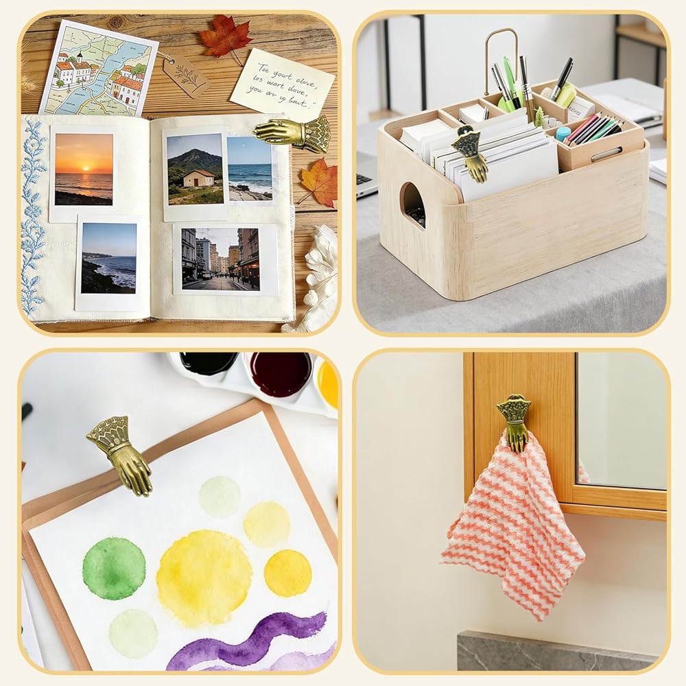 Vintage Hand Design: The unique vintage hand-shaped clip is practical and stylish. It adds a nostalgic touch to your notebooks and traveler's journals, and even spruces up your bathroom by clipping hand towels. A perfect mix of function and retro charm.