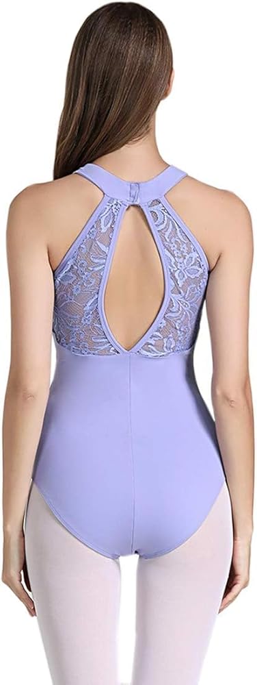 بدلة نسائية من Limiles برقبة رسن وفتحة خلفية للجمباز والباليه والرقص، أزياء رقص (أرجواني، XS)