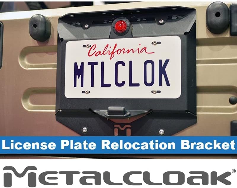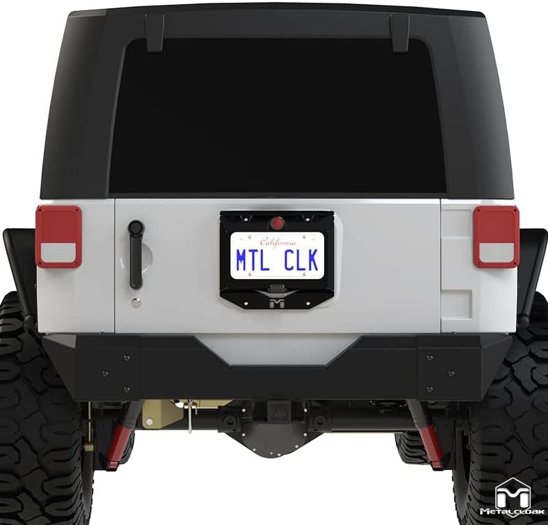 دعامة نقل لوحة الترخيص من Metalcloak، متوافقة مع TJ/LJ Wrangler، خفيفة الوزن، جميع الألومنيوم، مصابيح LED، جميع الأسلاك متضمنة، صنع في الولايات المتحدة الأمريكية