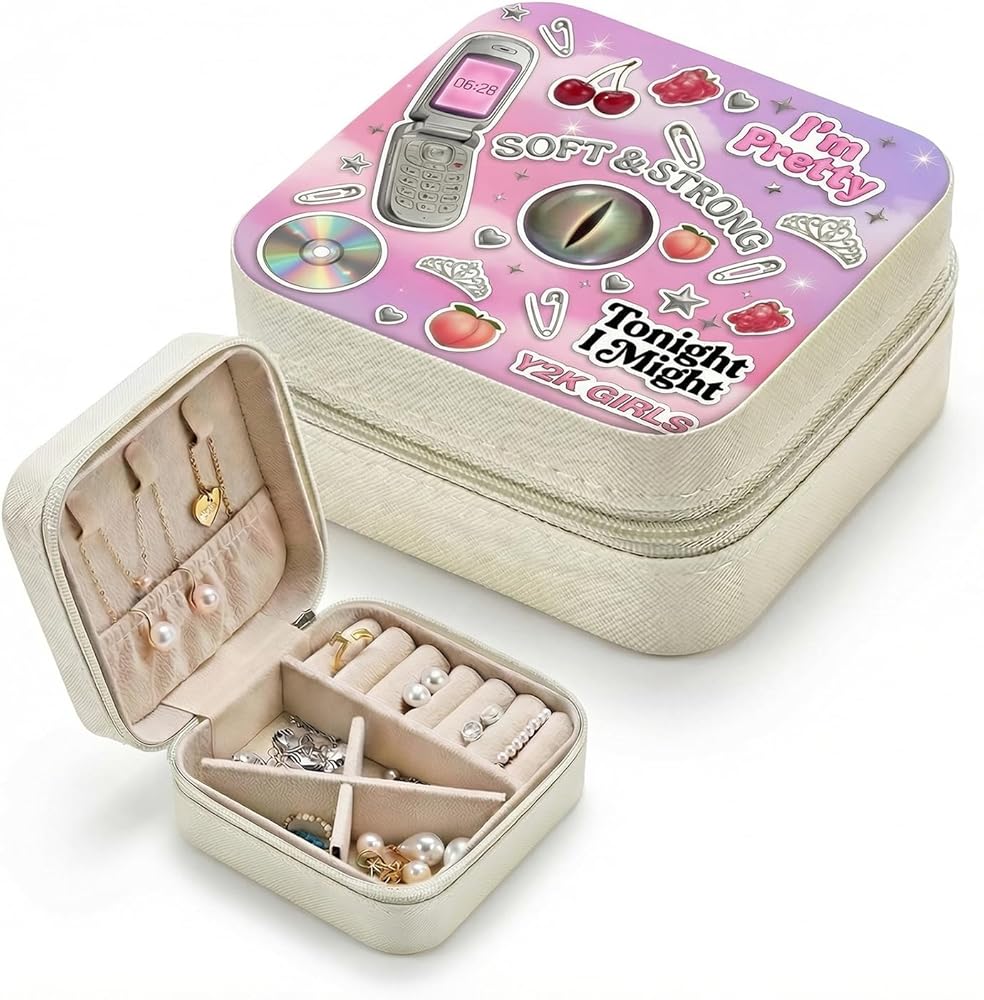 • ★ تصميم Y2K Pop الجرافيكي - مستوحى من أزياء Y2K ومرئيات البوب، يوفر التصميم اللافت للنظر طاقة واثقة ومرحة، مما يجعل صندوق المجوهرات هذا يبدو قابلاً للتحصيل وليس عاديًا.