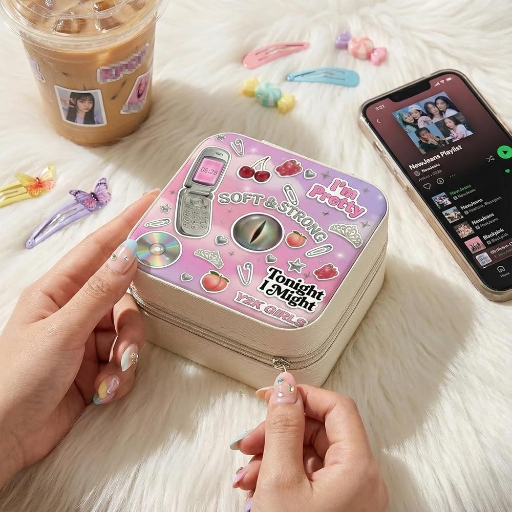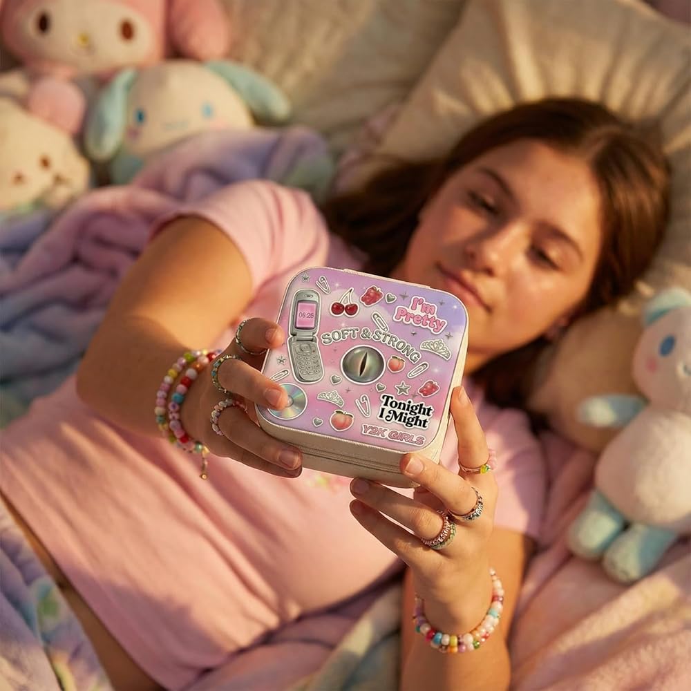 • 🍒 صندوق مجوهرات y2k Pop Fan - مصمم لمحبي y2k، يمزج صندوق المجوهرات هذا بين رسومات البوب ​​الجريئة والجمال المستوحى من Y2K، مما يحول تخزين المجوهرات اليومي إلى تعبير أنيق عن هوية المعجبين.