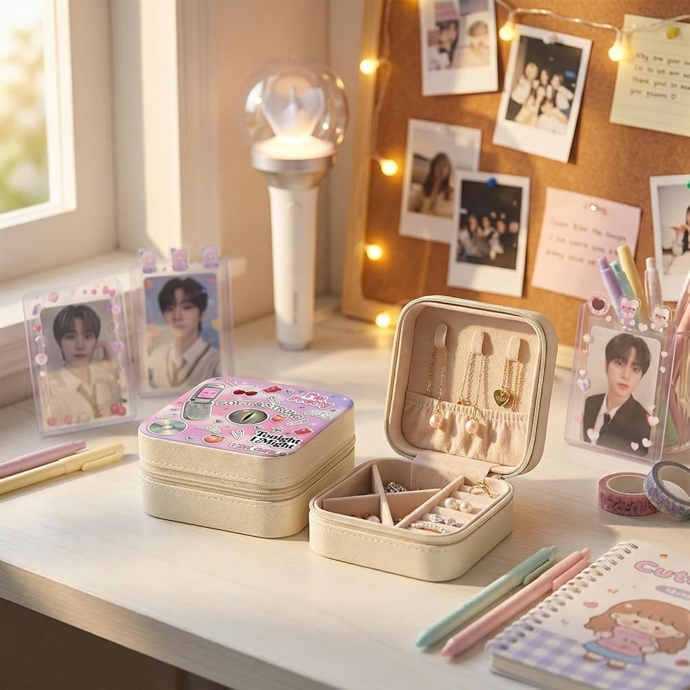 • 💎 كل يوم من أجل إكسسوار المعجبين المستوحى من موسيقى البوب ​​Y2K - أكثر من مجرد منظم مجوهرات، هذا الصندوق هو عنصر عملي للمعجبين لمجموعات Y2K، أو روتين التصفيف اليومي، أو هدية مدروسة للمعجبين.