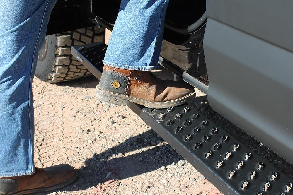 • احتكاك آمن: تحتوي خطوات شاحنة سن المنشار على فتحات مسننة مثقوبة بشكل عكسي على طول الألواح بالكامل مما يوفر أقصى قدر من السيطرة لخطوة آمنة في كل مرة، في جميع الظروف الجوية. إنها توفر خطوة سهلة وآمنة إلى شاحنتك من خلال لوحة بعرض 6.5 بوصة