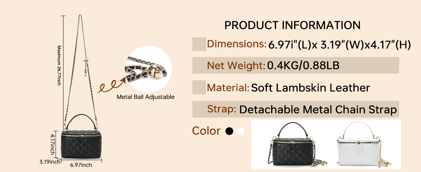 【تصميم مبطن لا يتأثر بمرور الزمن】يتميز جسم Goinsound بجزء خارجي مبطن عتيق وشكل صندوق منظم. تحتوي على سحابات ومقبض علوي وحزام سلسلة معدني قابل للتعديل وقابل للفصل لحمل متعدد الاستخدامات كحقيبة كروس أو كتف بمقبض علوي.