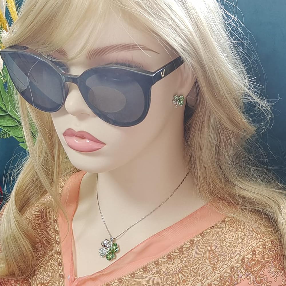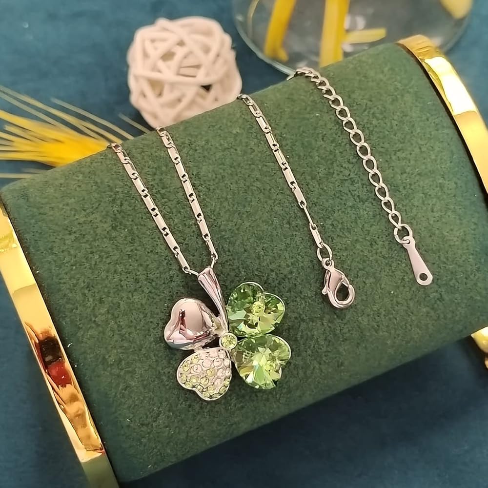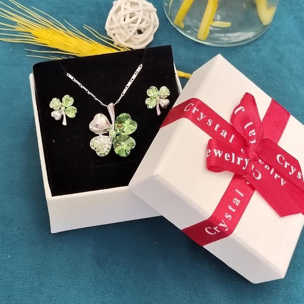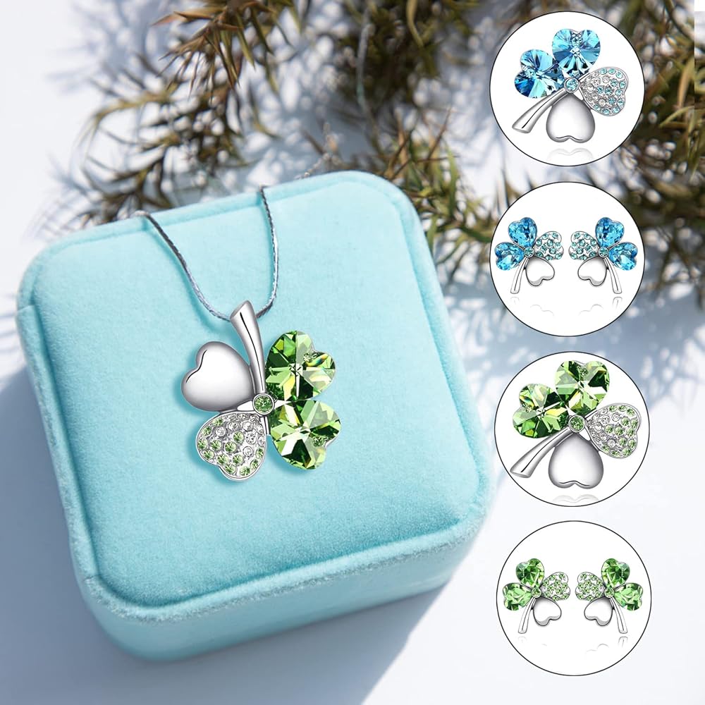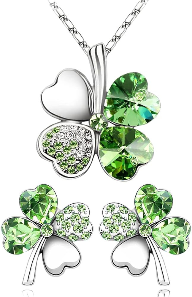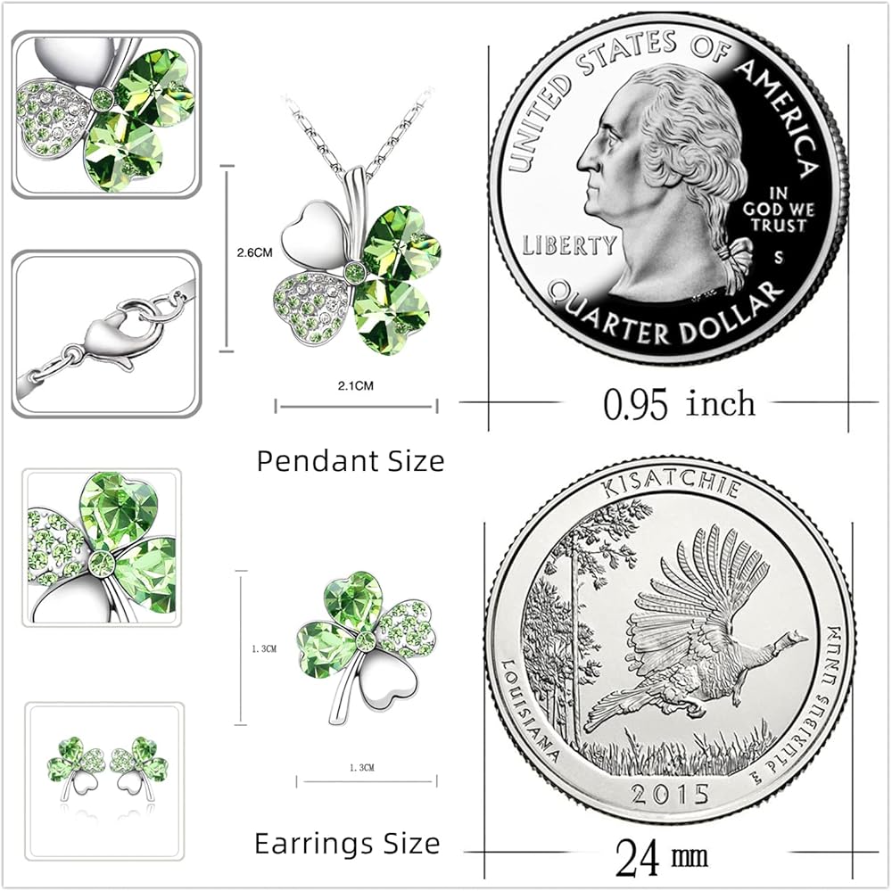 Lucky Heart Four Leaf Clover Necklace Sets Pendant Earrings with Swarovski Crystals,14K Rhodium Plated, Jewelry Gifts for Women; Earrings Hook Closure: 925 Sterling Silver Stud Earrings,Silver-Tone,Easy To Wear,Finish: Rhodium Overlay,Eco-Friend Brass With 14k White Gold Plated, are Nickel Free,Hypoallergenic.they can be worn safely; Stone: The Leaf Clover Pendant and Earrings Are Made of Authentic Austria Crystal,Two Heart Shaped Crystals and Some Small Round Crystals,Unique design and excellent Jewelry technology.Four Clover itself means hope and good luck,You Will Like Them.; Weight:Total Set about 12.35g,Earrings:2.79g Per Pairs,Pendant and Chain is about 9.52g,Earrings Szie:18mm*9mm(0.7*0.35inch),Pendant is 26mm*21mm(1.02*0.83inch),The Length is 45+5cm(18-20inch),5cm/2 inch extend chain,can adjust the size by yourself. Good GIFT CHOICE:Near Year ,Valentine, Christmas ,Anniversary Jewelry Gifts for Women ,Girls,Lover,Family,Friends,Colleague and yourself.You Can Wear Occasion:Party,Engagement,Anniversary,Wedding,work,home and Anywhere you like