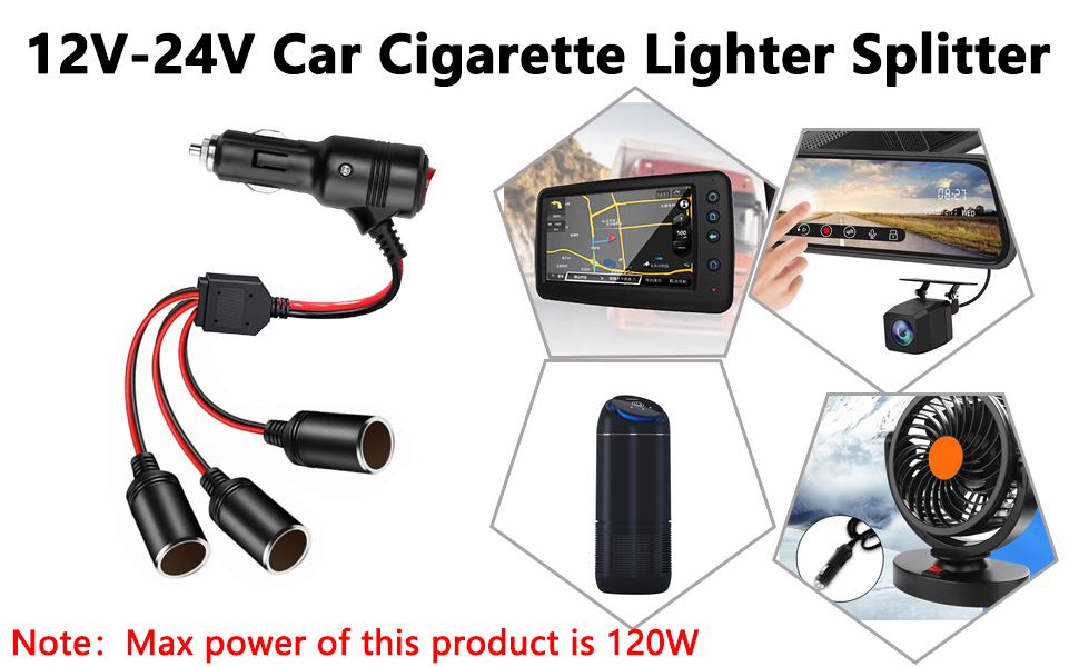 التوافق المشترك: 1 إلى 3 مقبس ولاعة السجائر في السيارة، مع أقصى خرج للطاقة 120 وات وسعة إجمالية 30 أمبير (10 أمبير لكل مقبس). لجهاز GPS الخاص بك، وكاميرا داش، والثلاجة، وعاكس الطاقة، والمكنسة الكهربائية، وآلة القهوة، ومضخة الإطارات، ومنقي الهواء، والمبرد، والمكنسة الكهربائية، إلخ