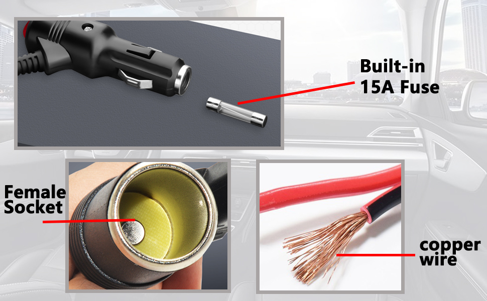 حماية السلامة: موزع ولاعة سجائر ثلاثي الاتجاهات 12 فولت، قابس ذكر مدمج وقابل للاستبدال 15 أمبير، يقطع التيار في الوقت المناسب لمنع مقسم السيارة وأجهزتك من التيار الزائد، والجهد الزائد، والتحميل الزائد، والسخونة الزائدة، وقصر الدائرة الكهربائية