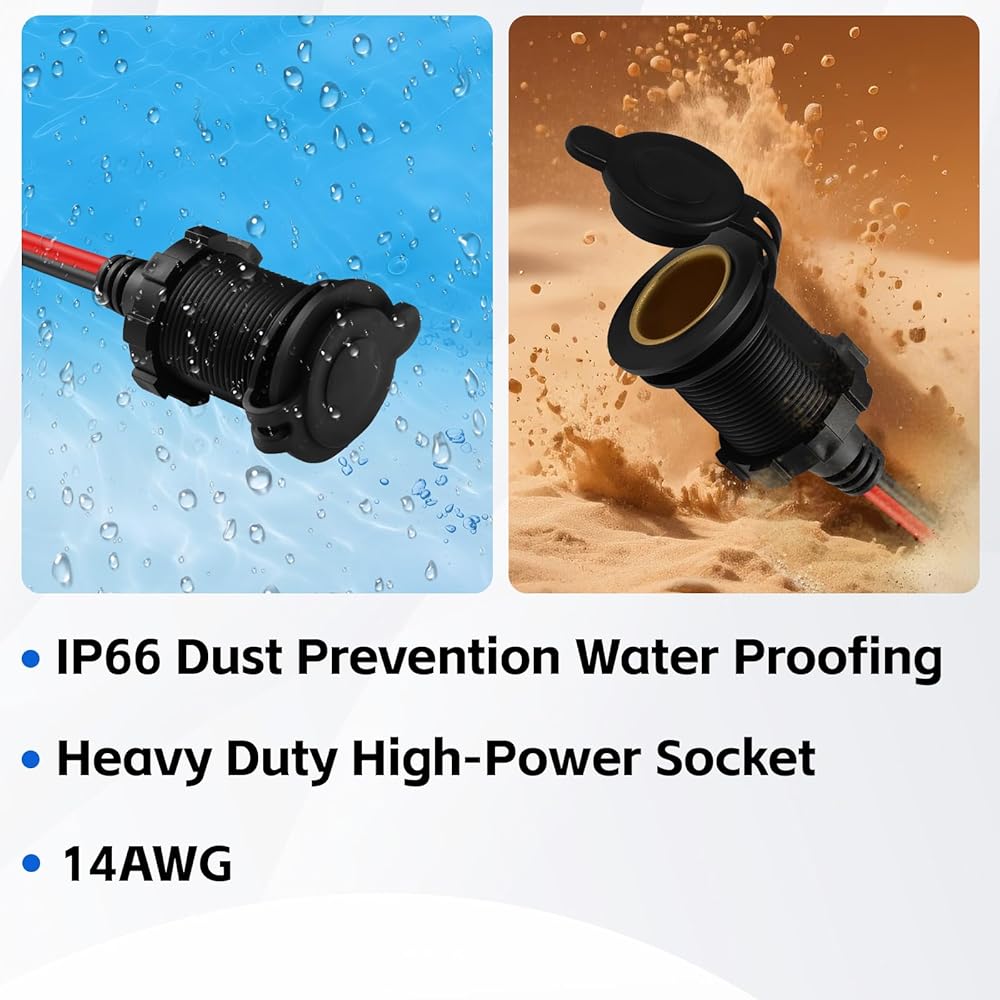 مقبس ولاعة السجائر، مقبس ولاعة السجائر 12 فولت مقاوم للماء، 14AWG/3.3FT