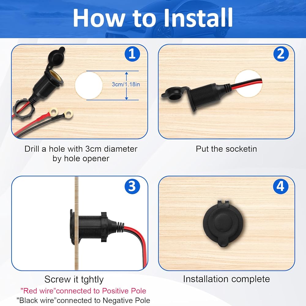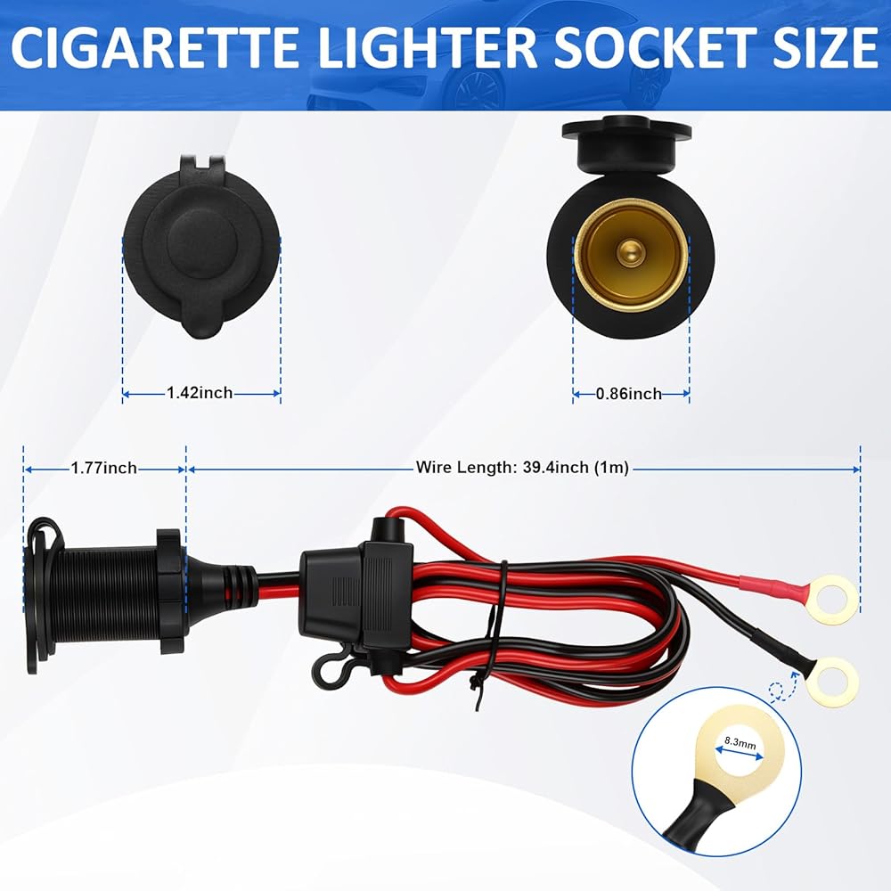 Cigarette Lighter Socket,12v Cigarette Lighter Socket Waterproof, 14AWG/3.3FT