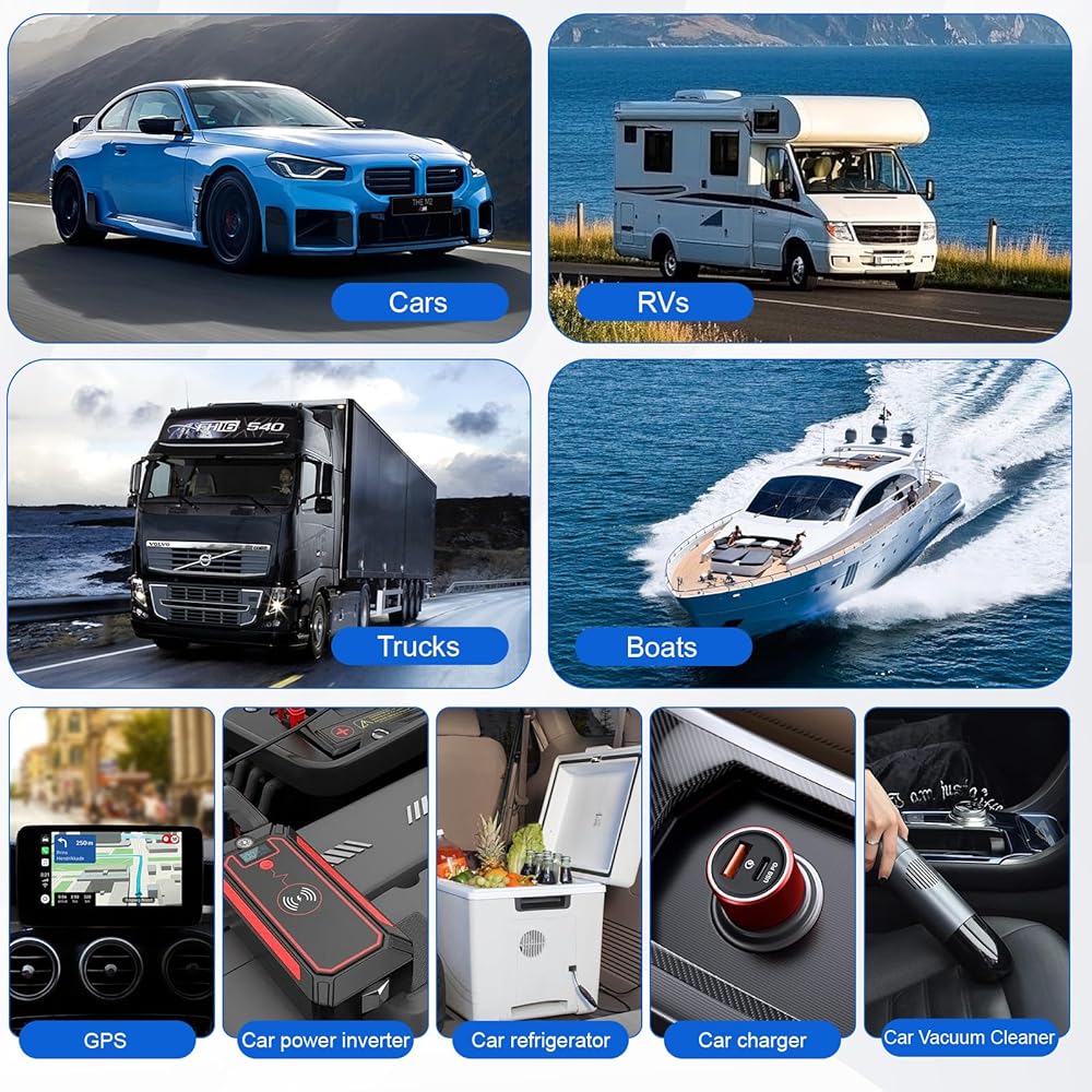 • 12v cigarette lighter socket,for tire inflator, power inverter, radio, fridge, fan, dash cam, air compressors and other 12v accessories