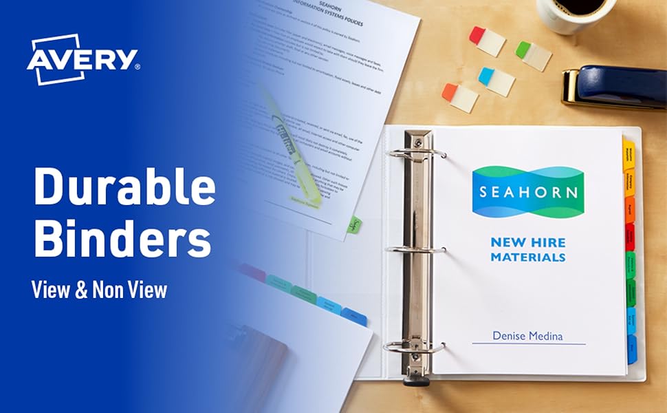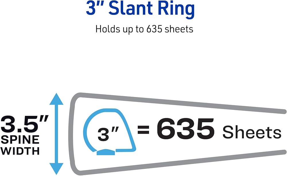 Durable View Binder: 3-inch slant rings hold up to 635 sheets of 8-1/2" x 11" paper with tear-resistant DuraHinge spine and split-resistant DuraEdge for superior protection