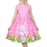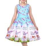 تصميم نابض بالحياة بطابع عيد الفصح: يتميز هذا الفستان بطبعات ملونة للأرانب وبيض عيد الفصح، مما يجعله الخيار الأمثل للاحتفال بموسم العطلات.