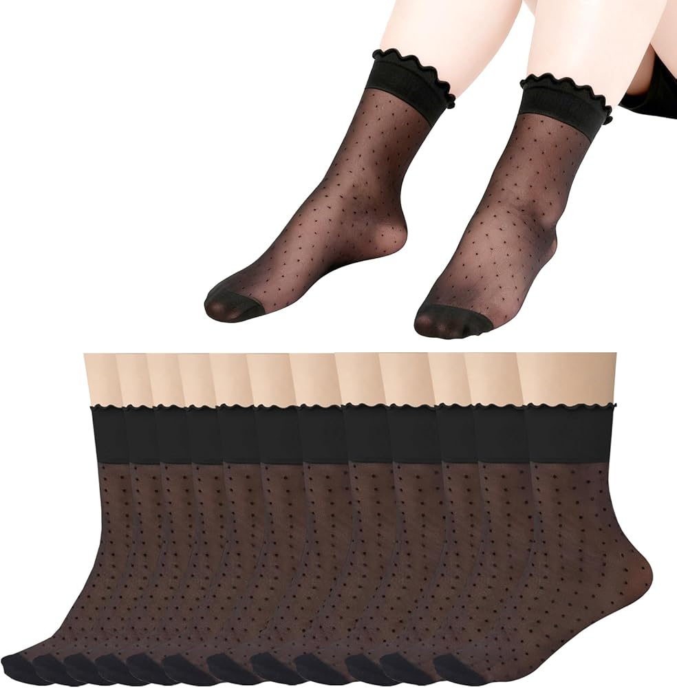 جوارب نسائية شفافة مكشكشة: الجوارب اللطيفة تستخدم كشكشة رائعة. فهو يجمع بشكل مثالي بين جمال الأقمشة الشفافة وسحر الكشكشة الأنيق. مثالية لإضافة لمسة من الأناقة إلى أي ملابس