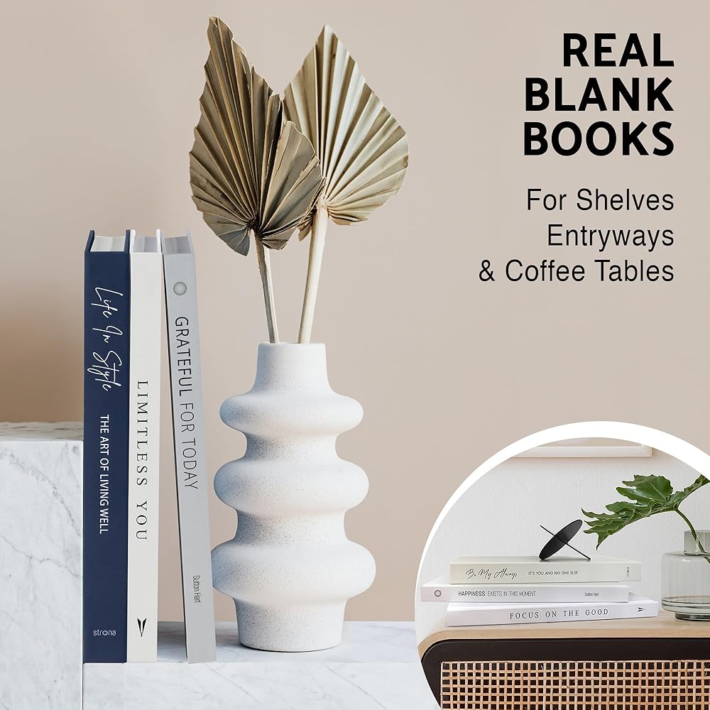 BLANK INSIDE: Our stackable books feature premium quality blank pages, making them perfect for journaling or guestbooks, when you're not using them as book decorations for your living room!
