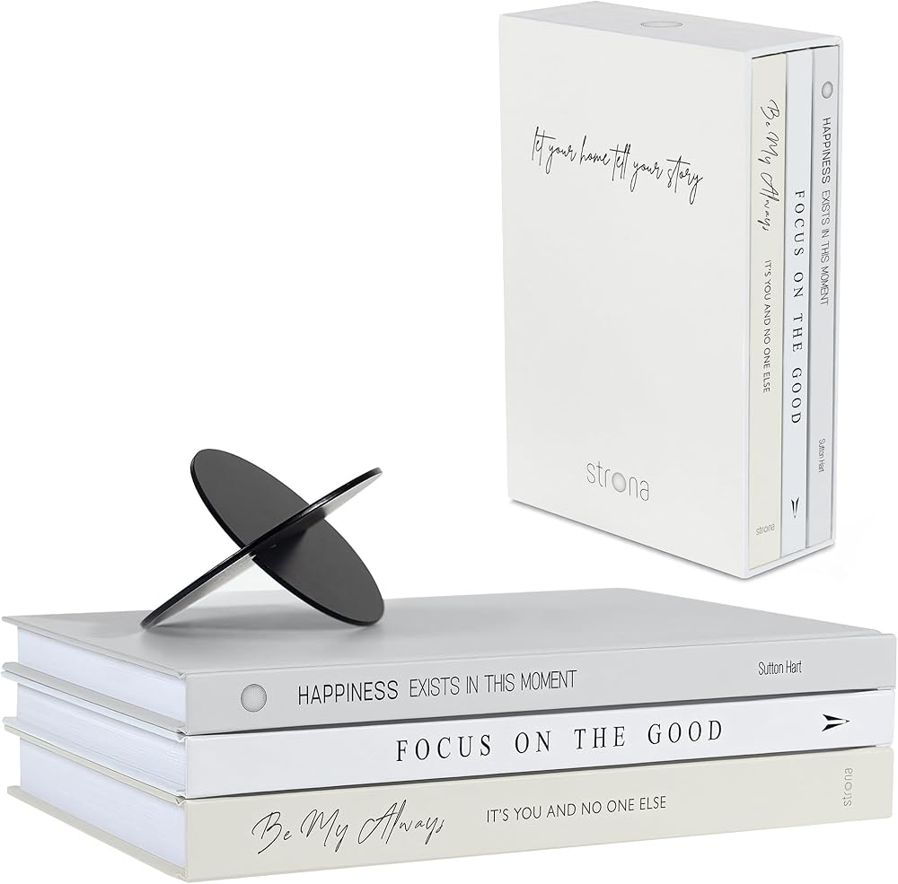 NEUTRAL BOOK DECOR SET – Each set of 3 decorative books for decor, in neutral shades of cream, white and soft gray, comes with a contrasting black metal accent to ensure you can style your stacked books decor in seconds, just like a professional stylist!
