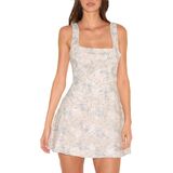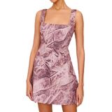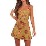 فساتين جاكار زهرية للنساء، فستان صيفي قصير بحزام قابل للتعديل على شكل حرف A in Kuwait