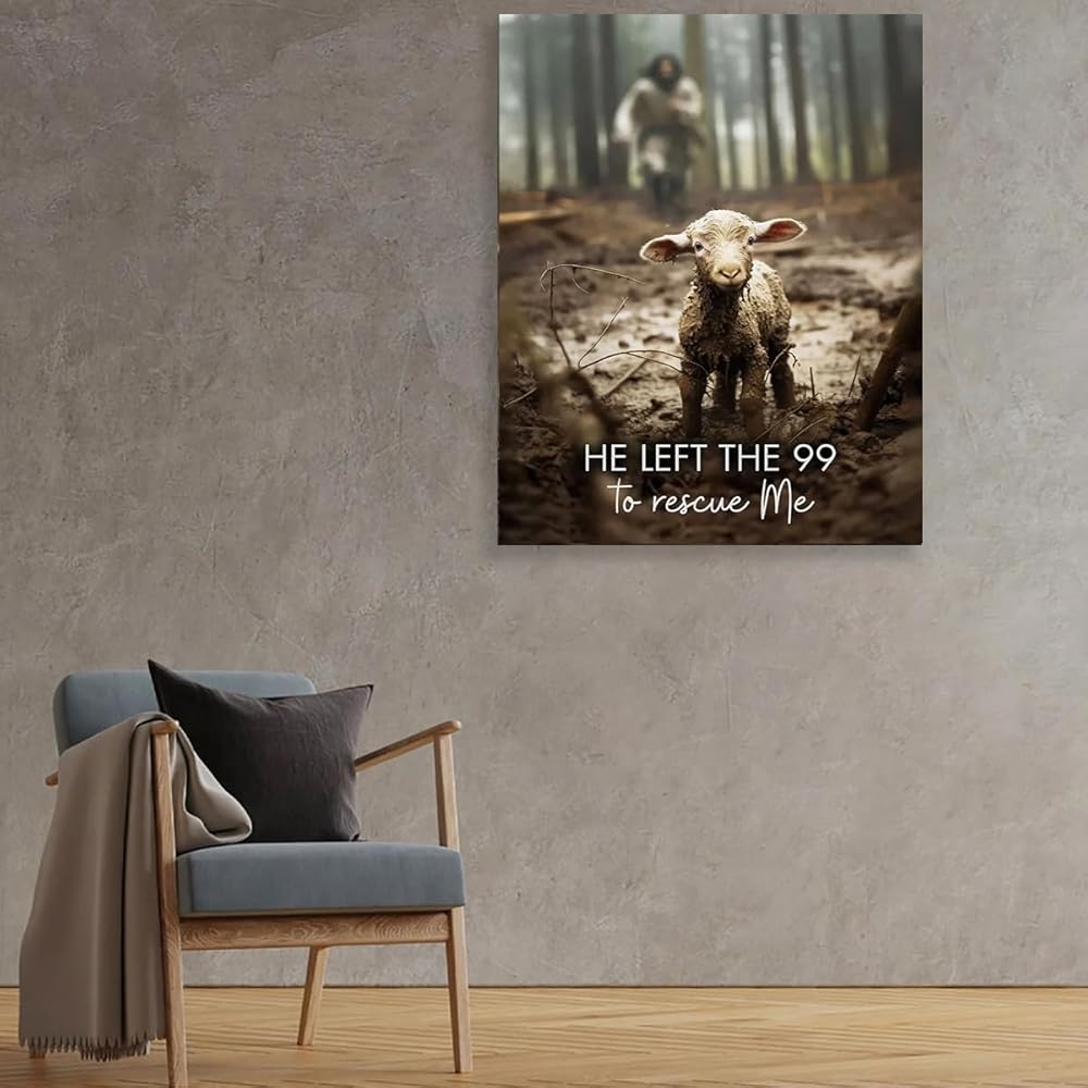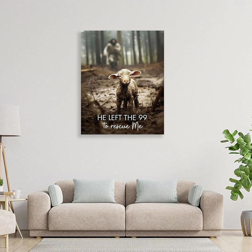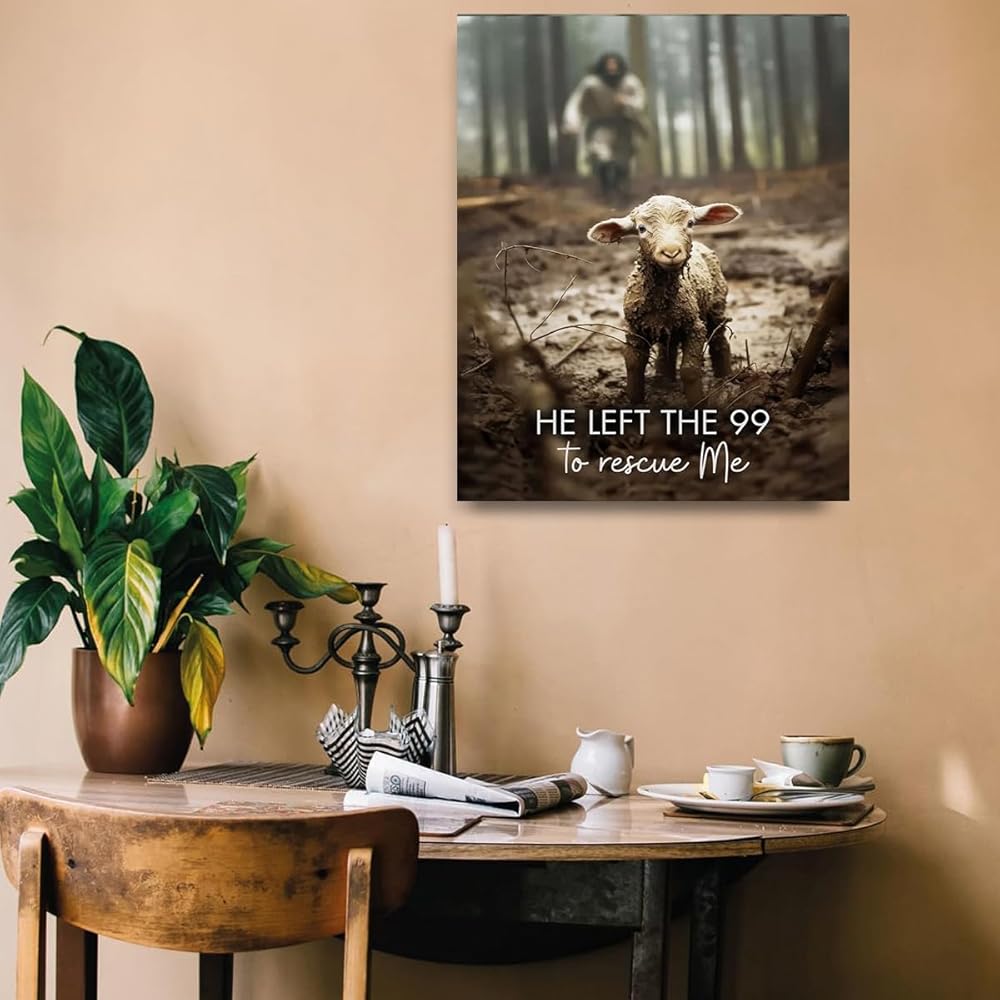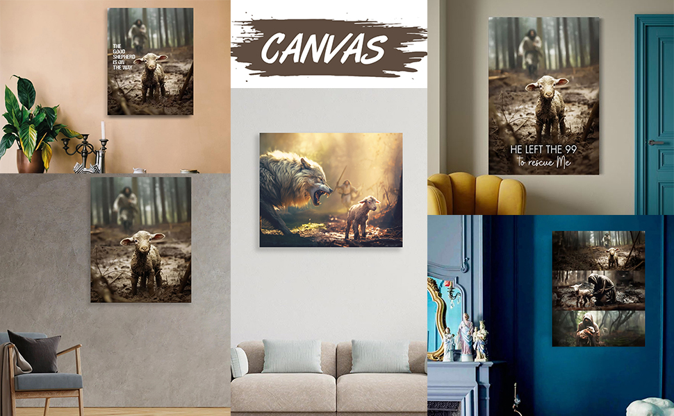 المواد: تتميز طبعتنا الفنية عالية الجودة ليسوع المسيح بتصوير حيوي ليسوع والحمل المفقود، مما يرمز إلى رعايته المستمرة لكل واحد منا.