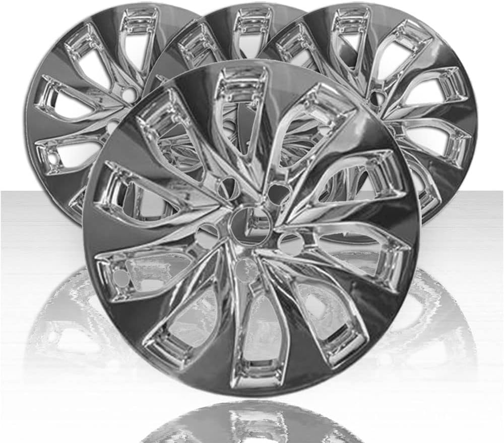 This set of 4 wheel skins is perfectly designed to fit your vehicle and easily automotive-hubcaps in minutes! These wheel skins are constructed from durable, automotive grade ABS plastic and feature an attractive gloss black finish for a custom look