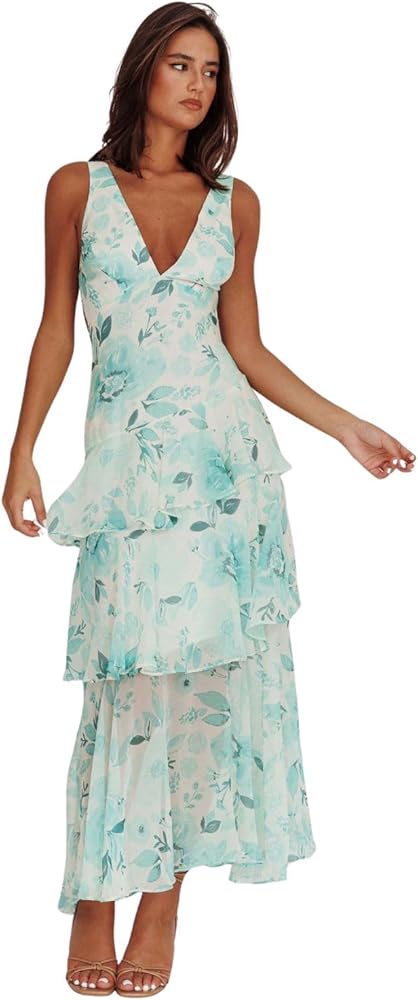 القماش مصنوع من مزيج البوليستر والإيلاستين، هذا الفستان النسائي الطويل بياقة على شكل حرف V العميق يتميز بنسيج شيفون ناعم ومريح. خفيف الوزن، ومسامي، ومقاوم للتجاعيد، ويبقيك منتعشًا ومنتعشًا طوال الصيف.