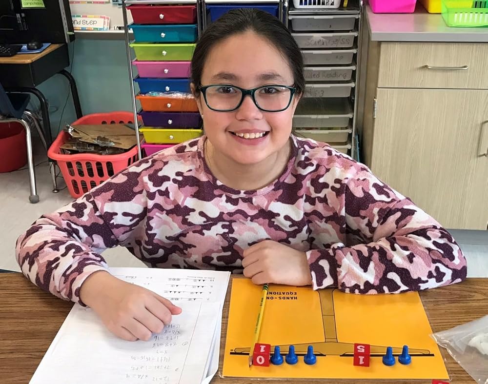 • يستخدم قطع اللعبة لتمكين الأطفال من تمثيل المعادلات الخطية الجبرية وحلها جسديًا