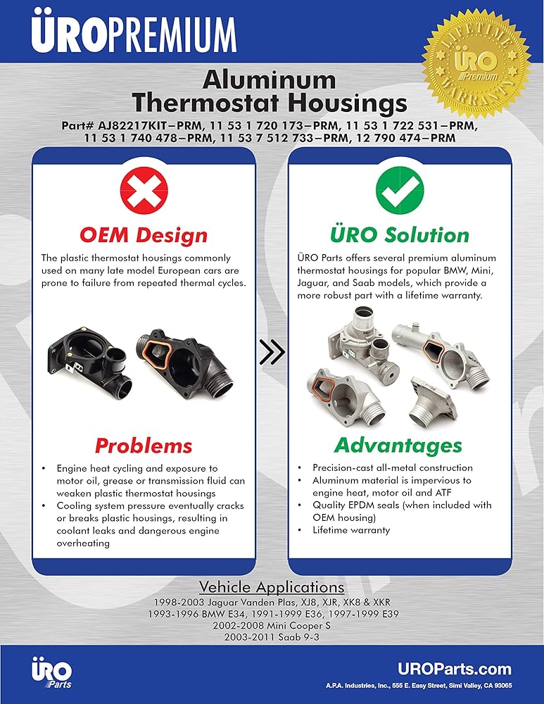 أجزاء URO 12790474PRM مبيت منظم الحرارة، ألومنيوم