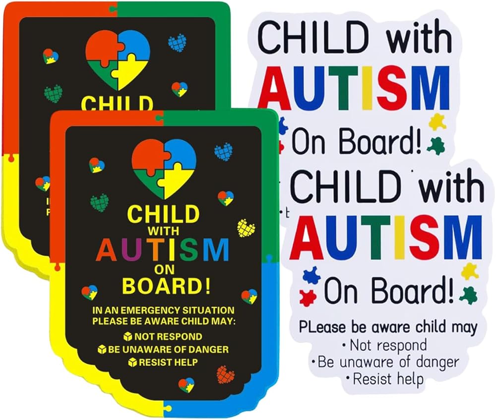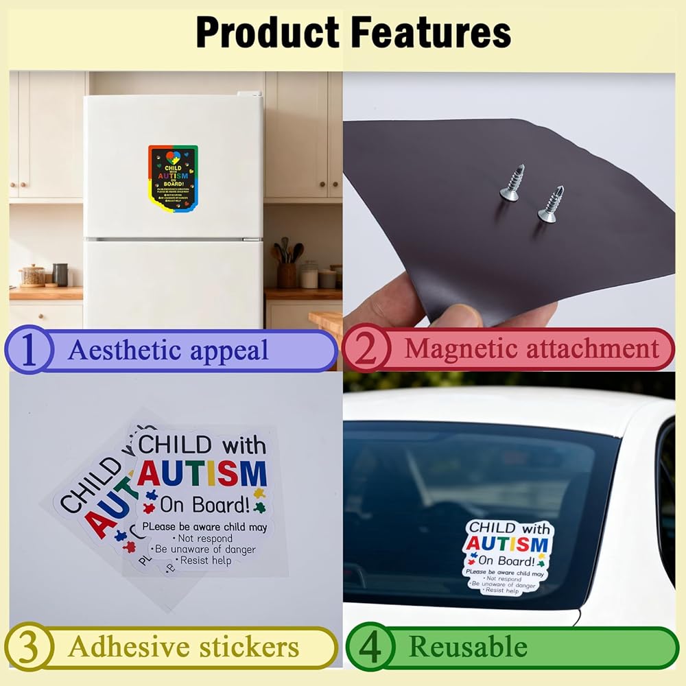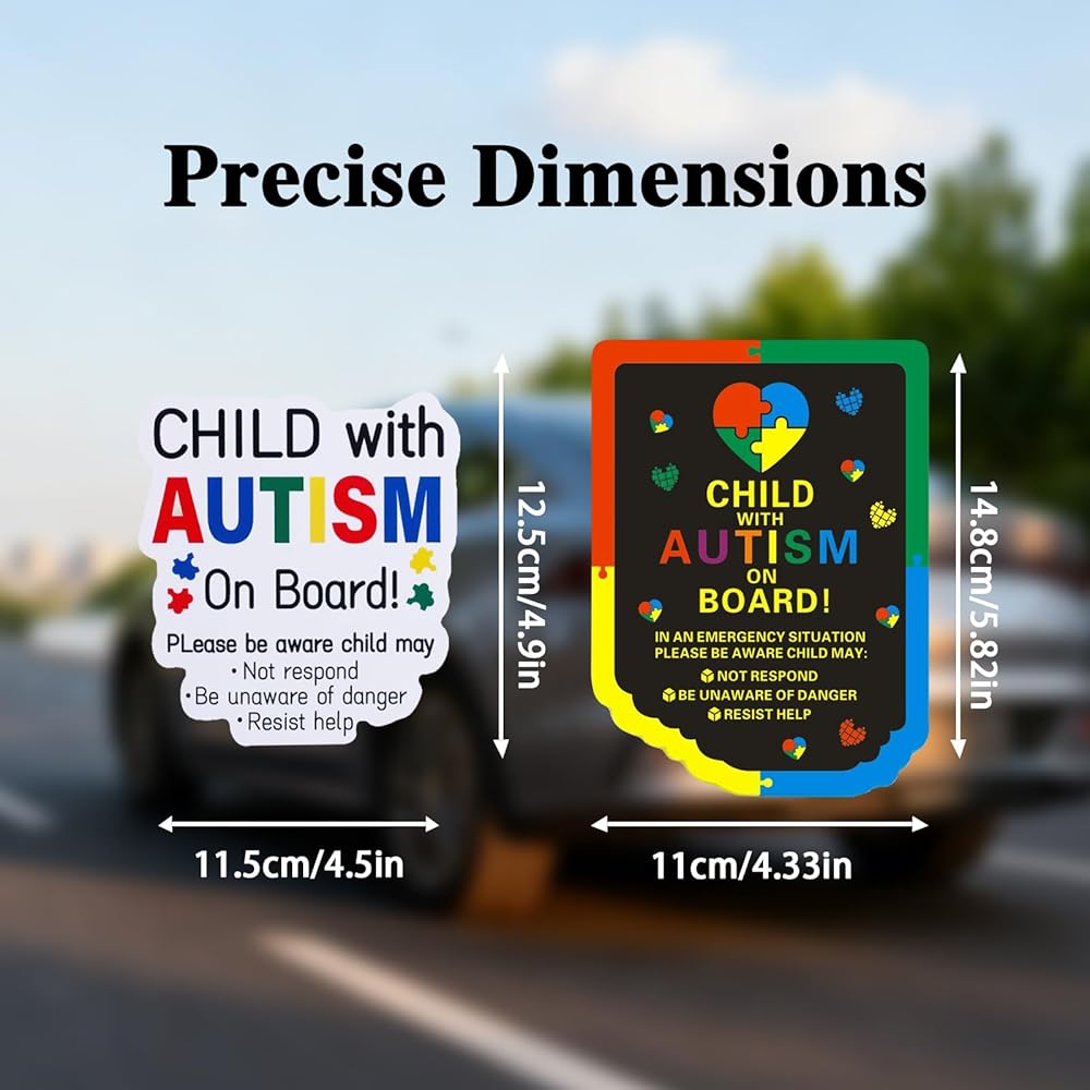 Autism Car Magnets & Stickers 4-Pack (2 Magnets + 2 Stickers) | Reusable Child with Autism On Board Sticker for Metal Surfaces | Non-Adhesive Autism Car Decals to Enhance Road Safety