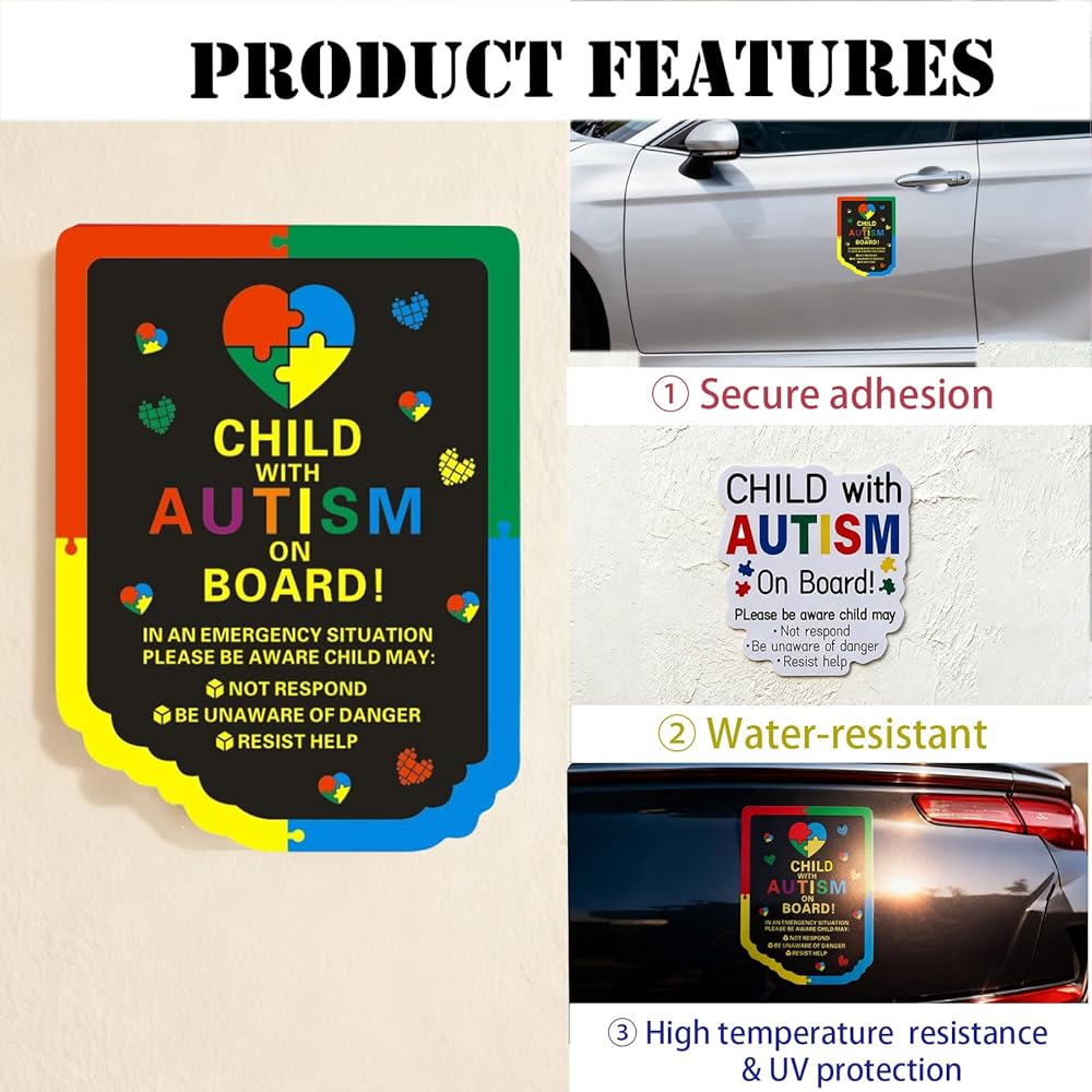 PROMOTE SAFETY & UNDERSTANDING ON THE ROAD: Gently alert fellow drivers and responders with a clear "Child with Autism On Board" message. This autism car sticker and magnet set can help foster patience and caution around your vehicle, enhancing safety for your precious passenger and promoting autism awareness in your community