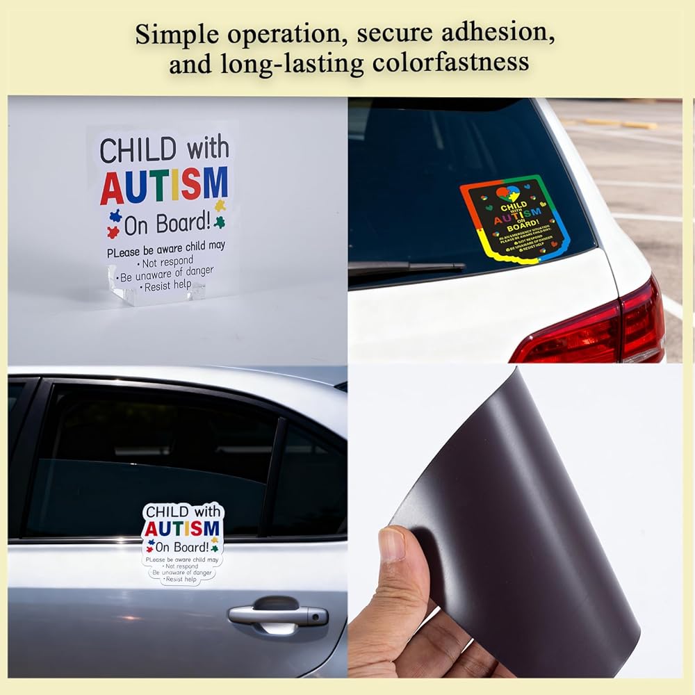 VIBRANT, MEANINGFUL DESIGN BUILT TO LAST: Crafted with high-quality, thick materials, our autism car decals are weather-resistant and fade-resistant. The bold, colorful design ensures high visibility, making your "Child with Autism On Board Sticker" a clear and proud statement that lasts through sun, rain, and car washes