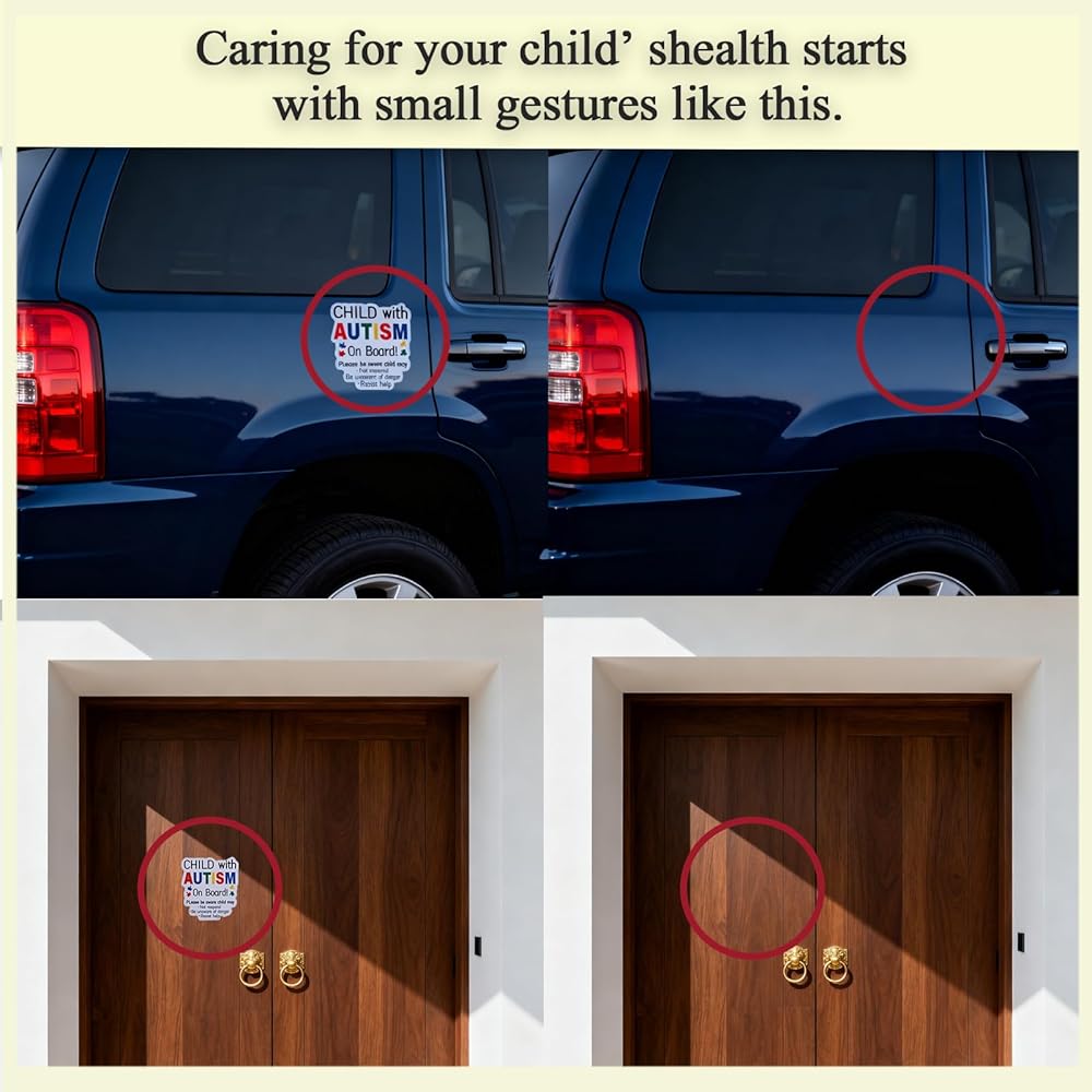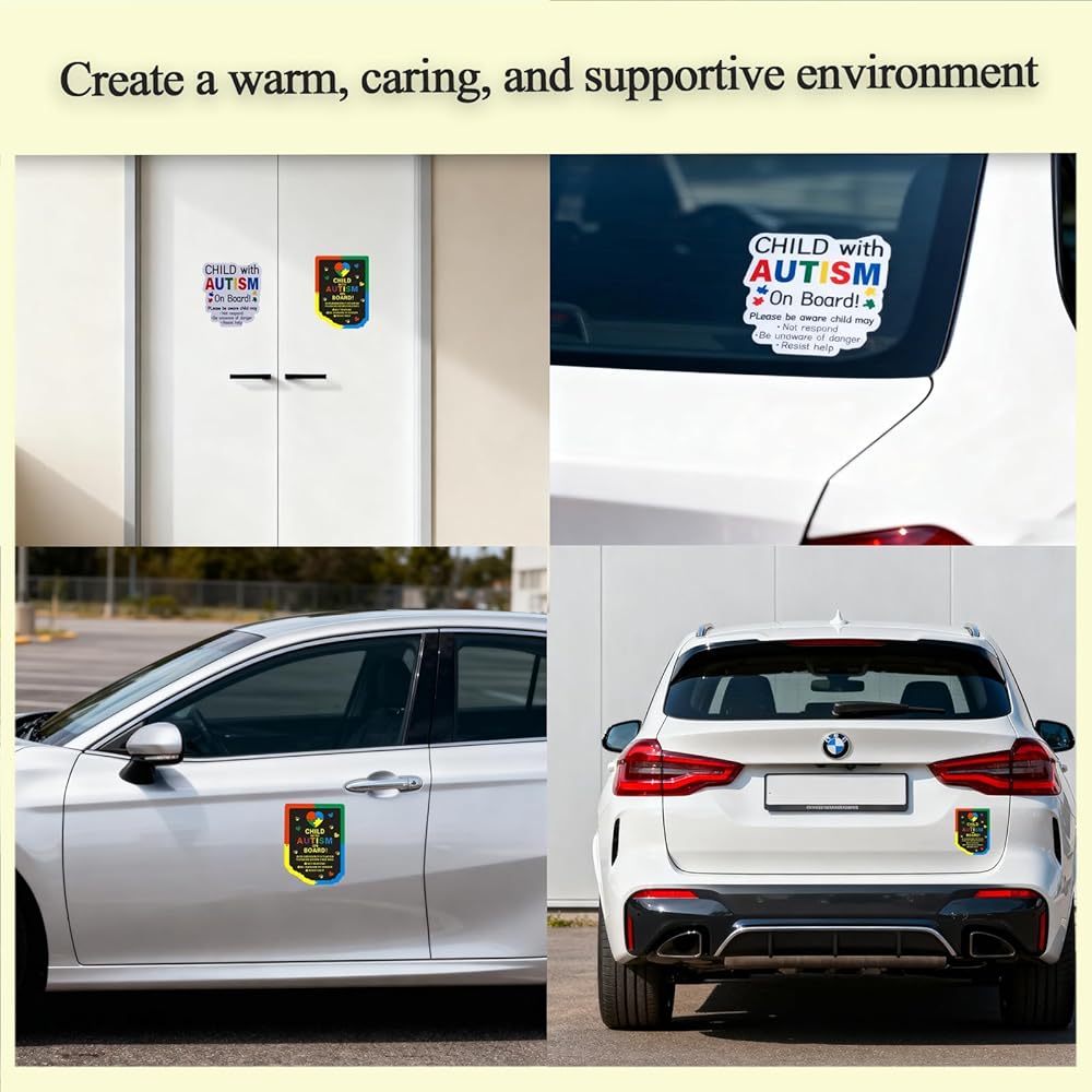 مغناطيس وملصقات سيارات التوحد 4 عبوات (2 مغناطيس + 2 ملصقين) | ملصق على اللوحة قابل لإعادة الاستخدام للأطفال المصابين بالتوحد للأسطح المختلفة | ملصقات مغناطيسية غير لاصقة لسيارات التوحد لتعزيز السلامة على الطرق