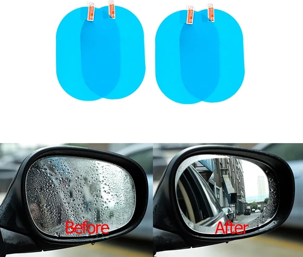 ✅ DUAL PROTECTION IN 4 PACK – Each film provides both rain repellent and anti‑glare functions. It keeps your side mirrors clear during heavy rain and reduces blinding glare from headlights at night, ensuring safer driving in all weather conditions.