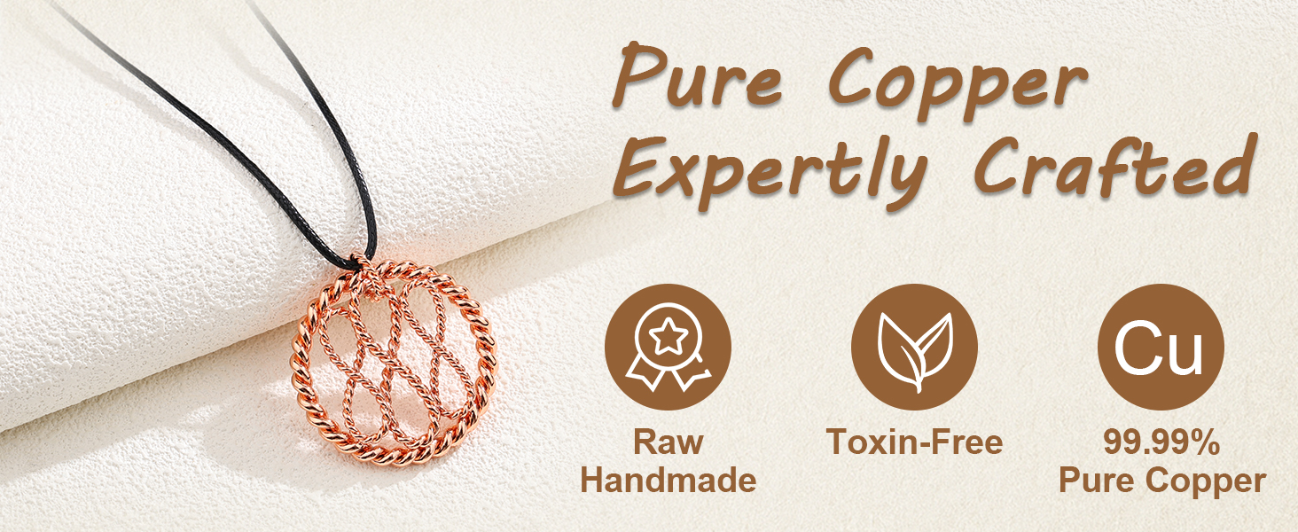 • [Sacred Spiral Design Pendant]: This necklace features a handwoven copper pendant inspired by sacred geometry and energy spirals, symbolizing harmony, unity, and the flow of life force. Its unique spiral flower motif reflects balance and spiritual connection.