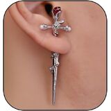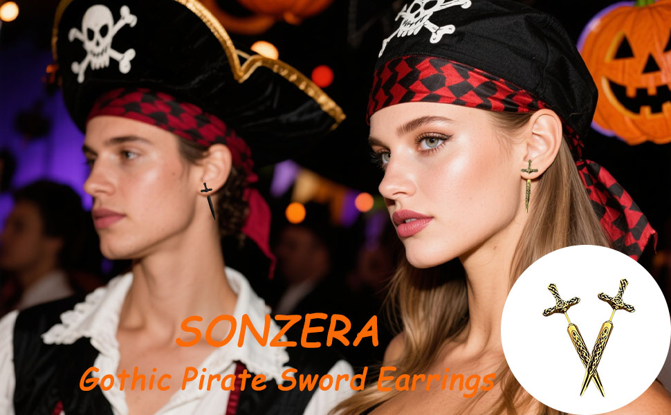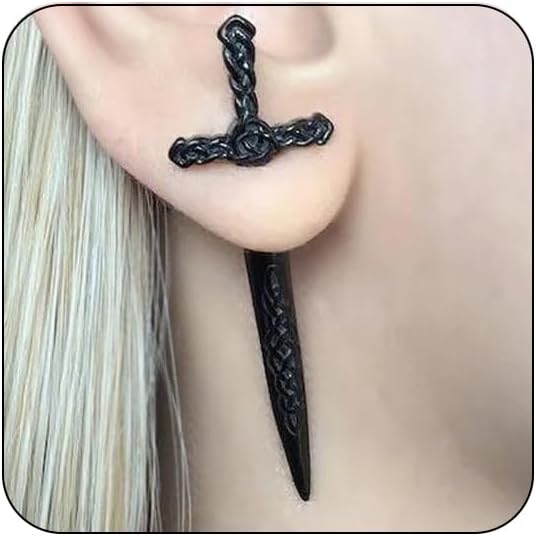 مجوهرات القراصنة التنكرية: ارفع جمالك الشرير مع أقراط سيف القرصان هذه للهالوين، والتي تتميز بديكور خنجر. يناسب تصميم حلق الخنجر المصنوع من حجر الراين معظم أشكال الأذن، مما يجعلها رائعة لأزياء الهالوين أو معارض عصر النهضة أو إضافة لمسة متمردة إلى الملابس اليومية مثل السترات الجلدية وقمصان الفرقة