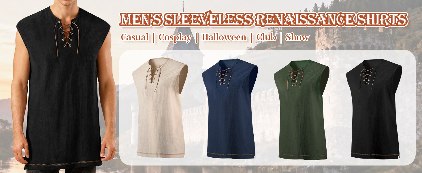 • قميص عصر النهضة بدون أكمام: تأتي قمصان القراصنة الرجالية (بدون أكمام) في مجموعة واسعة من الألوان لتناسب ذوقك الشخصي. تتميز بتصميم متعدد الاستخدامات وخالد، ومن السهل إقرانها مع أي شيء ومثالية لمختلف المناسبات - بدءًا من عطلات نهاية الأسبوع غير الرسمية والعمل والأنشطة الرياضية وحتى التسكع ببساطة. سواء كنت ترتديه كقميص قرصان مستقل، أو كقطعة طبقات أساسية، أو كملابس شاطئ مريحة، ستجد أنه يوفر ملاءمة مثالية دائمًا وأسلوبًا سهلاً.