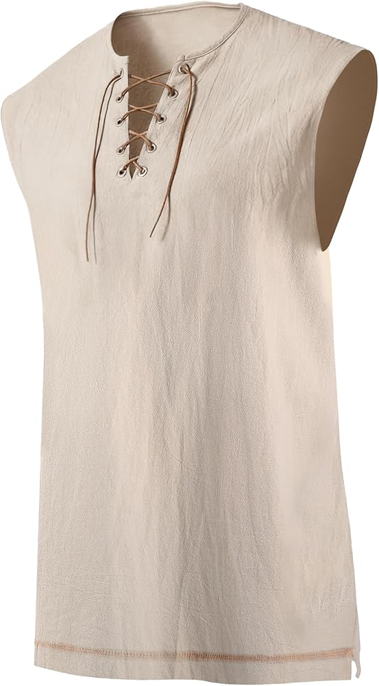 • قميص قرصان قطني بدون أكمام: قميص عصر النهضة الخاص بنا مصنوع من نسيج قطني مسامي بنسبة 90% ونسيج كتان بنسبة 10%. زي القرصان الرجالي أنيق ومريح وخفيف الوزن وجيد التهوية، مع ملمس ناعم على الجلد. المقاس الفضفاض والمستقيم مريح لجميع أنواع الجسم ومناسب لمعظم الأشخاص. قميص Viking عملي وسهل العناية به، مما يضفي جاذبية عتيقة على أي حدث بطابع العصور الوسطى أو عصر النهضة أو القراصنة.