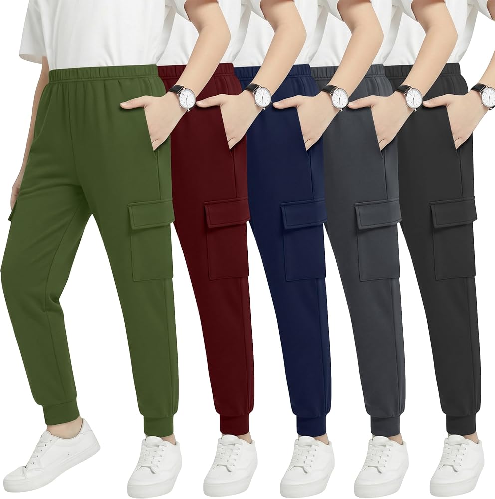 5 قطع من السراويل الرياضية للأولاد والبنات الرياضية للركض بخصر مطاطي كاجوال مع 4 جيوب للأعمار من 5 إلى 14 سنة in Kuwait