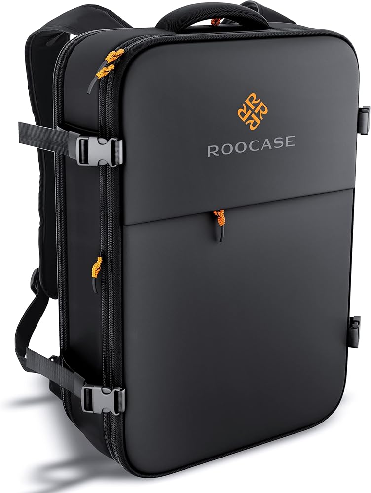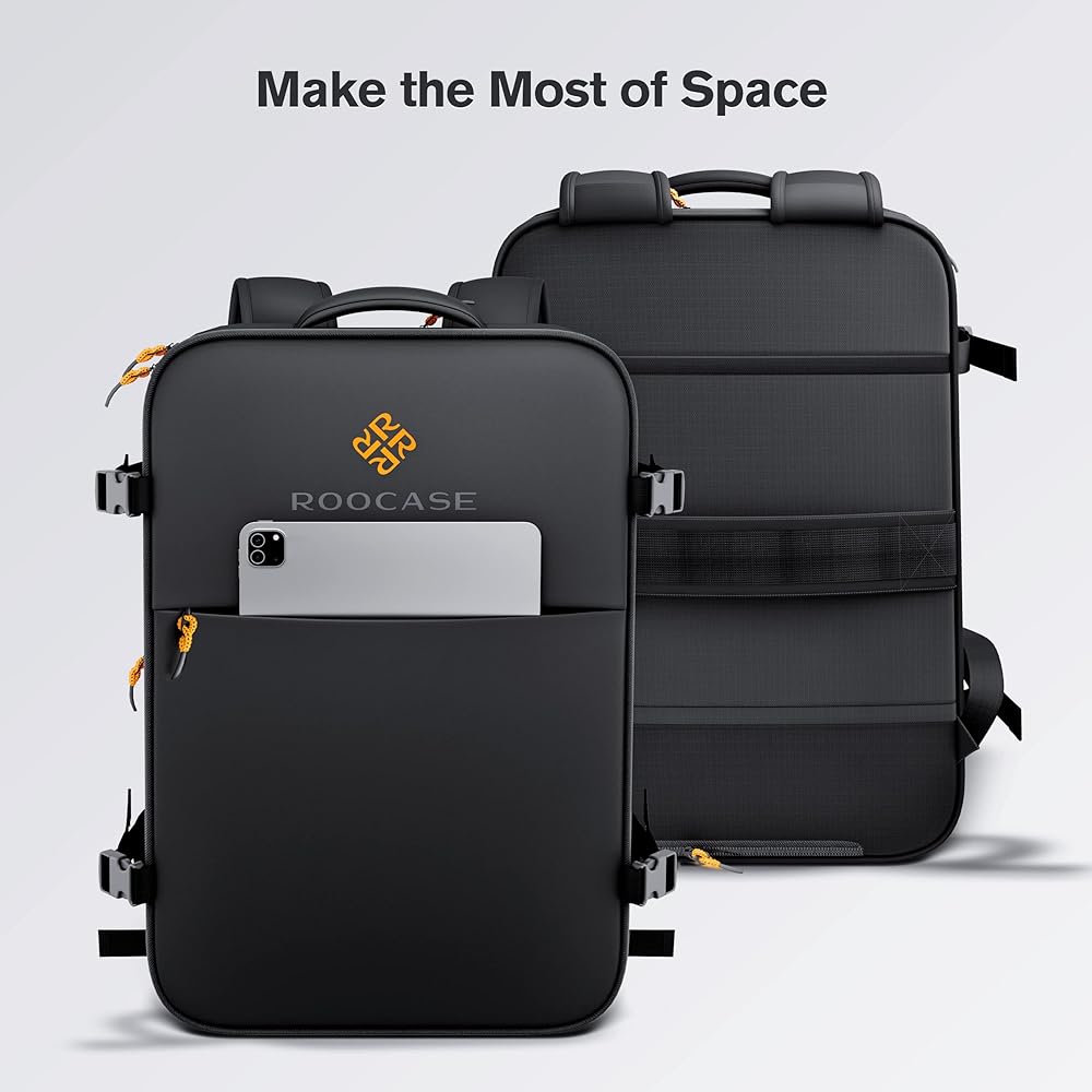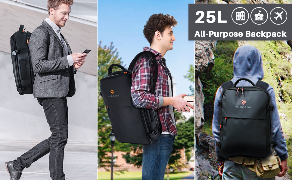 حقيبة ظهر للسفر من rooCASE Venice سعة 25 لترًا - كمبيوتر محمول بحجم 15.6 بوصة لأمتعة العمل في عطلة نهاية الأسبوع وحقيبة ظهر لحقيبة السفر الدولية للرجال والنساء، تتضمن مكعبين للتعبئة مجانًا