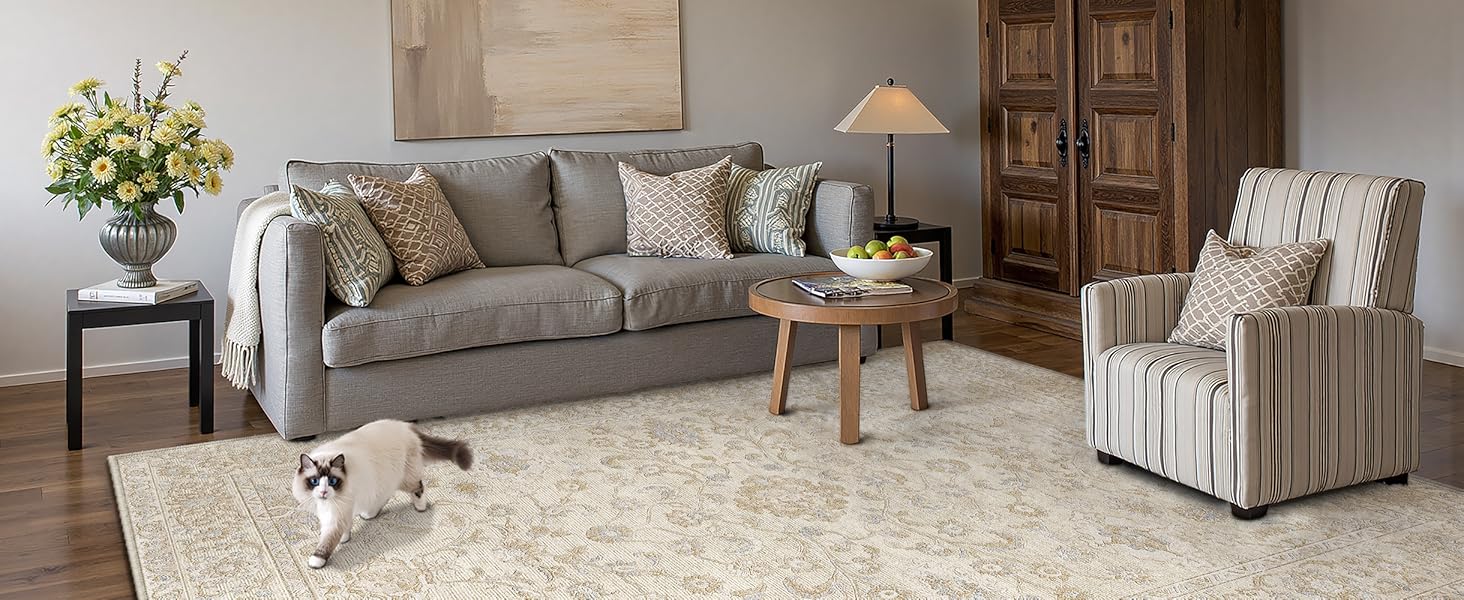 سجادة عصرية زهرية: تتميز هذه السجادة المطبوعة بنمط زهور مصقول يضيف الدفء والشخصية إلى أي غرفة. يمتزج المظهر المطبوع بالزهور الخالدة دون عناء مع الديكور الحديث أو المزرعة أو الكلاسيكي، مما يجعله لمسة متعددة الاستخدامات لغرف المعيشة أو غرف النوم أو الممرات أو المطابخ أو المكاتب.