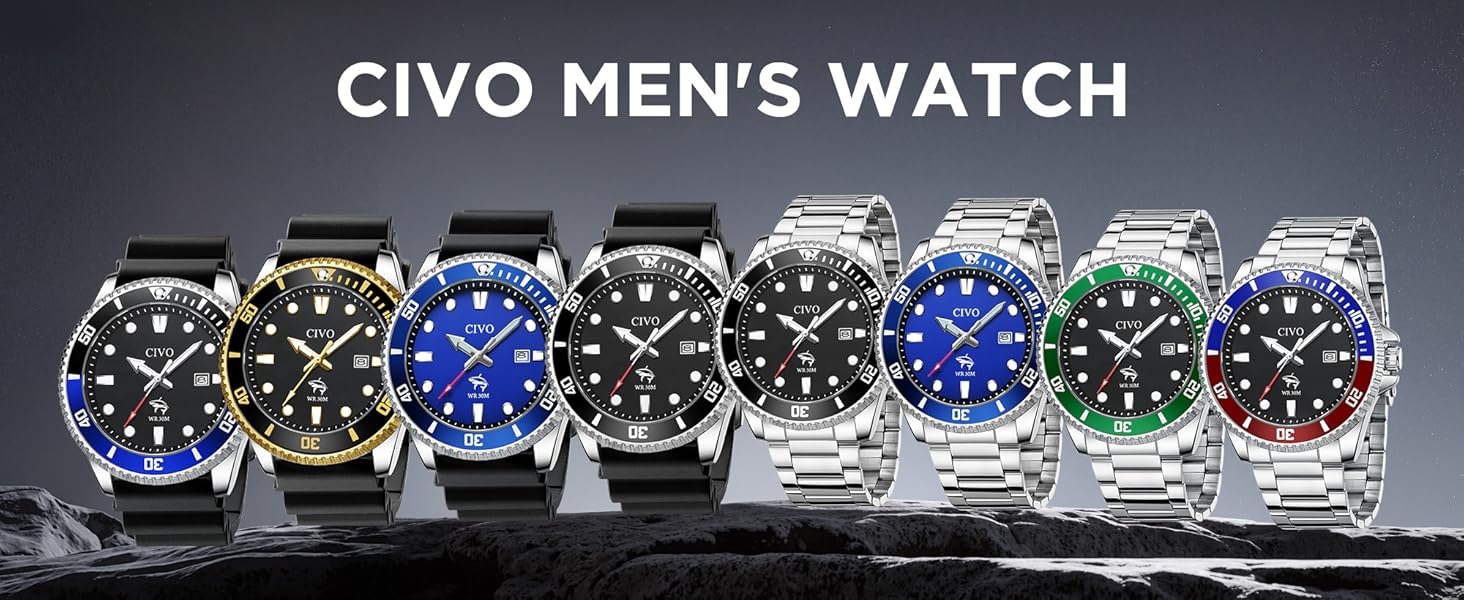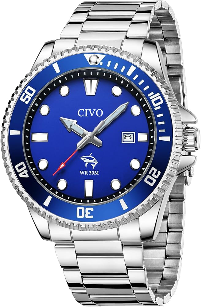 Designed for men who value precision, durability, and confident style, this CIVO analog watch features a stainless steel case, anti-reverse bezel, and luminous hands and markers for clear readability in low light.