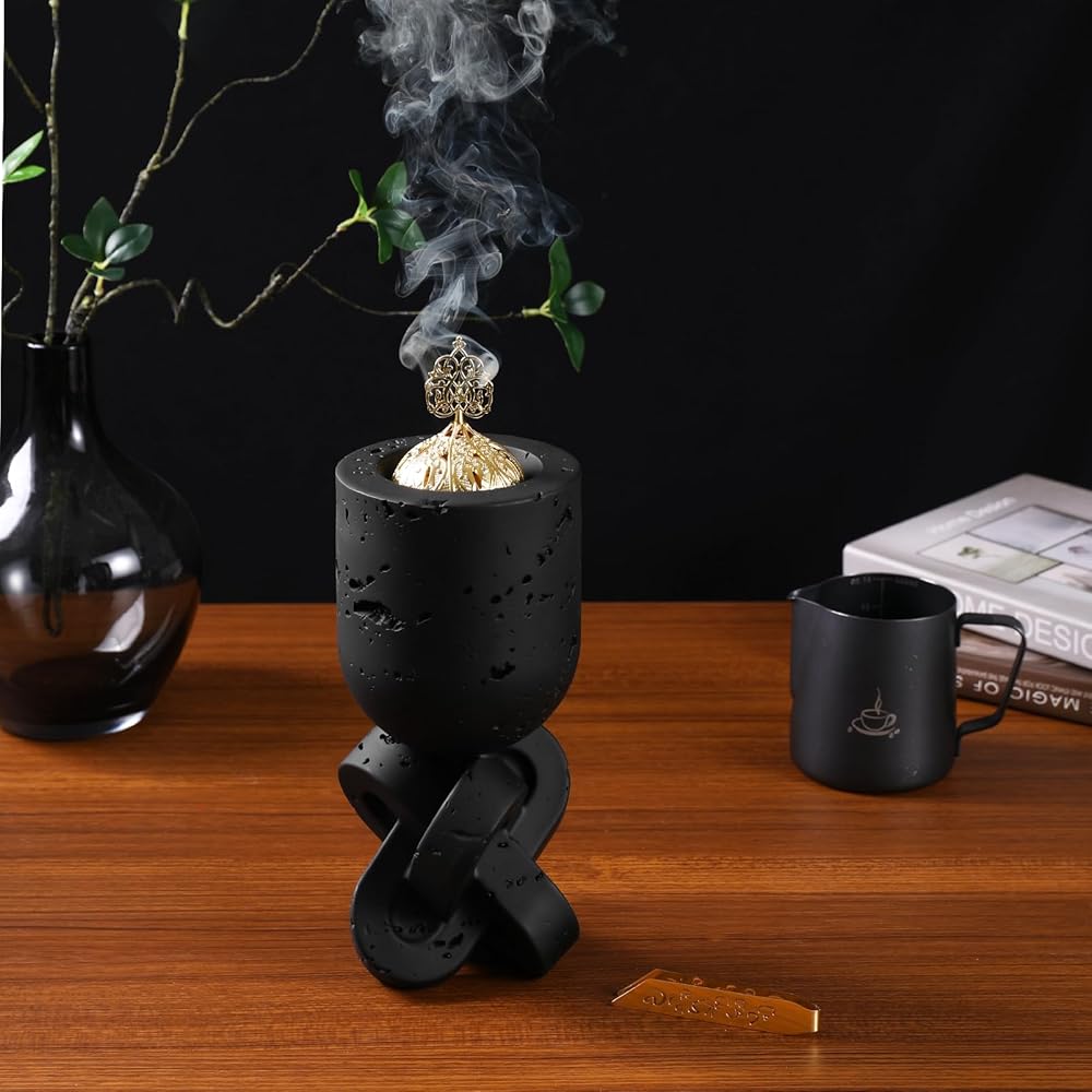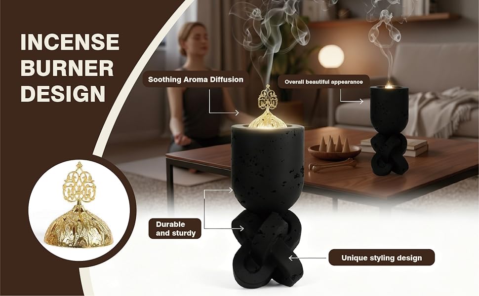 تصميم محمول: خفيف الوزن وقابل للحمل لسهولة الاستخدام. مبخرة بخور من الراتنج الأسود الأنيق. هدية مبخرة عود جميلة لجميع المناسبات
